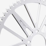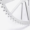 The rear sprocket on a motorcycle is a key component of the drivetrain system, located on the rear wheel hub. It works in conjunction with the front sprocket and the chain to transmit power from the engine to the rear wheel, propelling the motorcycle forward. The rear sprocket features a series of teeth that mesh with the chain, and its size affects the motorcycle’s gearing and performance characteristics. A larger rear sprocket increases torque and acceleration, while a smaller one improves top speed and fuel efficiency. Proper maintenance and alignment of the rear sprocket are essential for optimal drivetrain performance and safety.