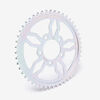 The rear sprocket on a motorcycle is a key component of the drivetrain system, located on the rear wheel hub. It works in conjunction with the front sprocket and the chain to transmit power from the engine to the rear wheel, propelling the motorcycle forward. The rear sprocket features a series of teeth that mesh with the chain, and its size affects the motorcycle’s gearing and performance characteristics. A larger rear sprocket increases torque and acceleration, while a smaller one improves top speed and fuel efficiency. Proper maintenance and alignment of the rear sprocket are essential for optimal drivetrain performance and safety.