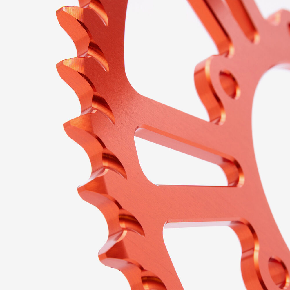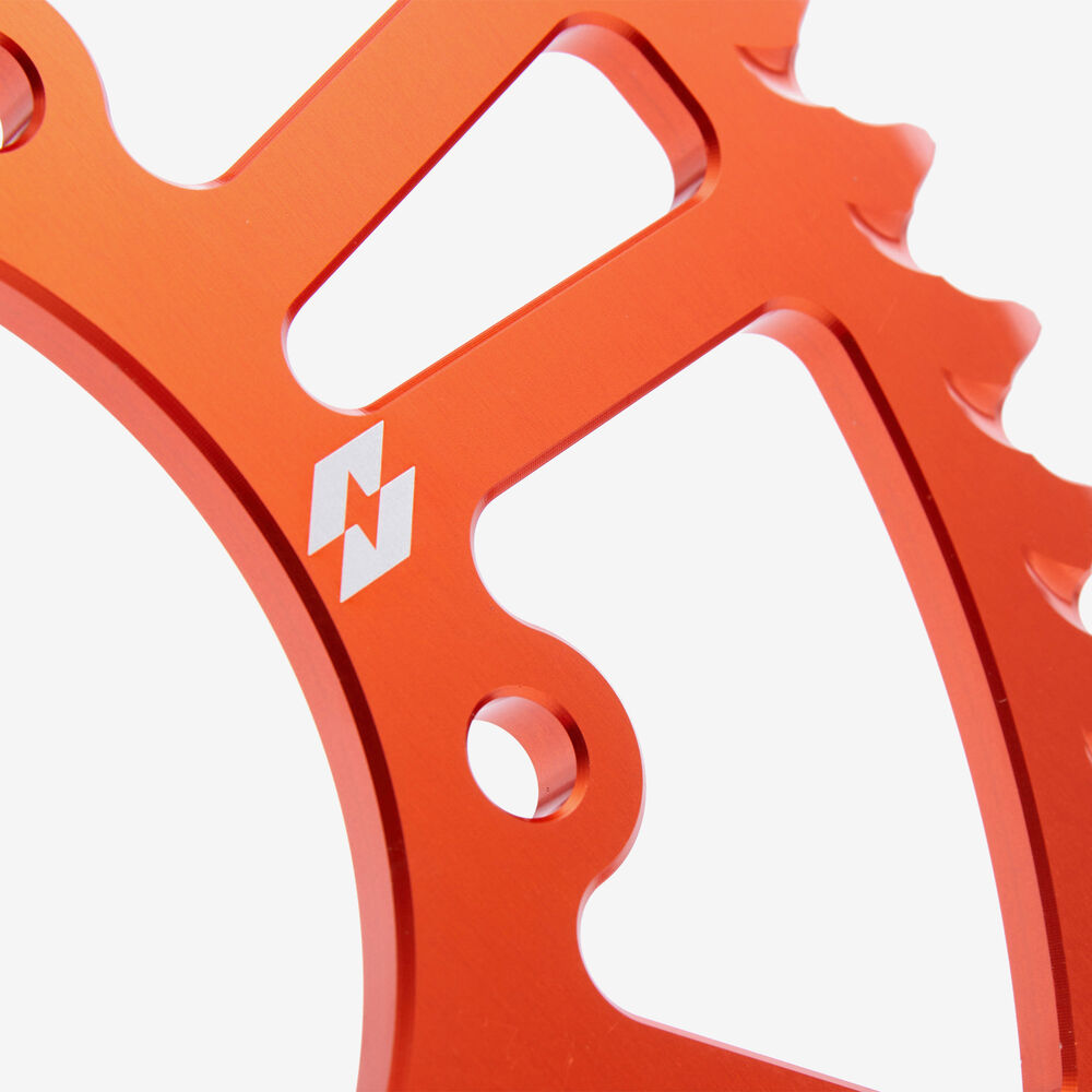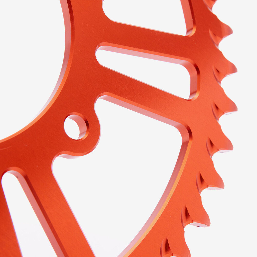 Choose from sprocket sizes ranging from 44T to 60T, providing you with a variety of options to customize your ride. Additionally, our sprockets come in eight vibrant colors, allowing you to make a bold statement while optimizing your bikes performance.
