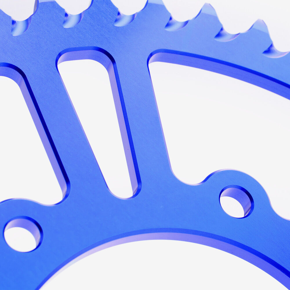 Choose from sprocket sizes ranging from 44T to 60T, providing you with a variety of options to customize your ride. Additionally, our sprockets come in eight vibrant colors, allowing you to make a bold statement while optimizing your bikes performance.