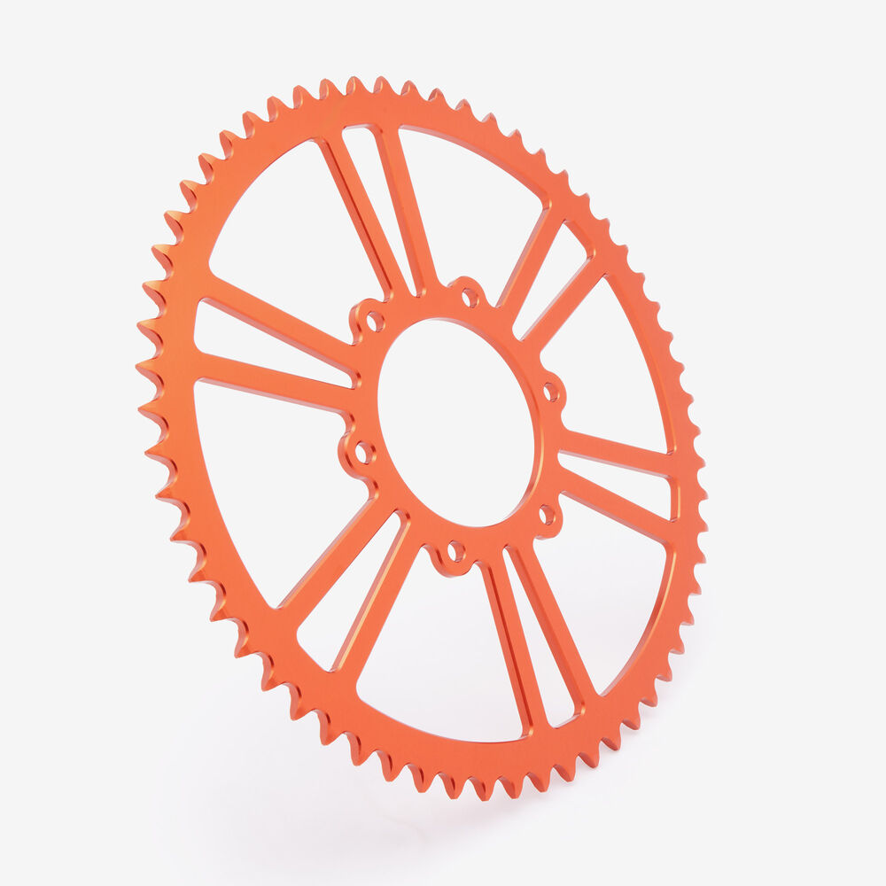 Choose from sprocket sizes ranging from 44T to 60T, providing you with a variety of options to customize your ride. Additionally, our sprockets come in eight vibrant colors, allowing you to make a bold statement while optimizing your bikes performance.