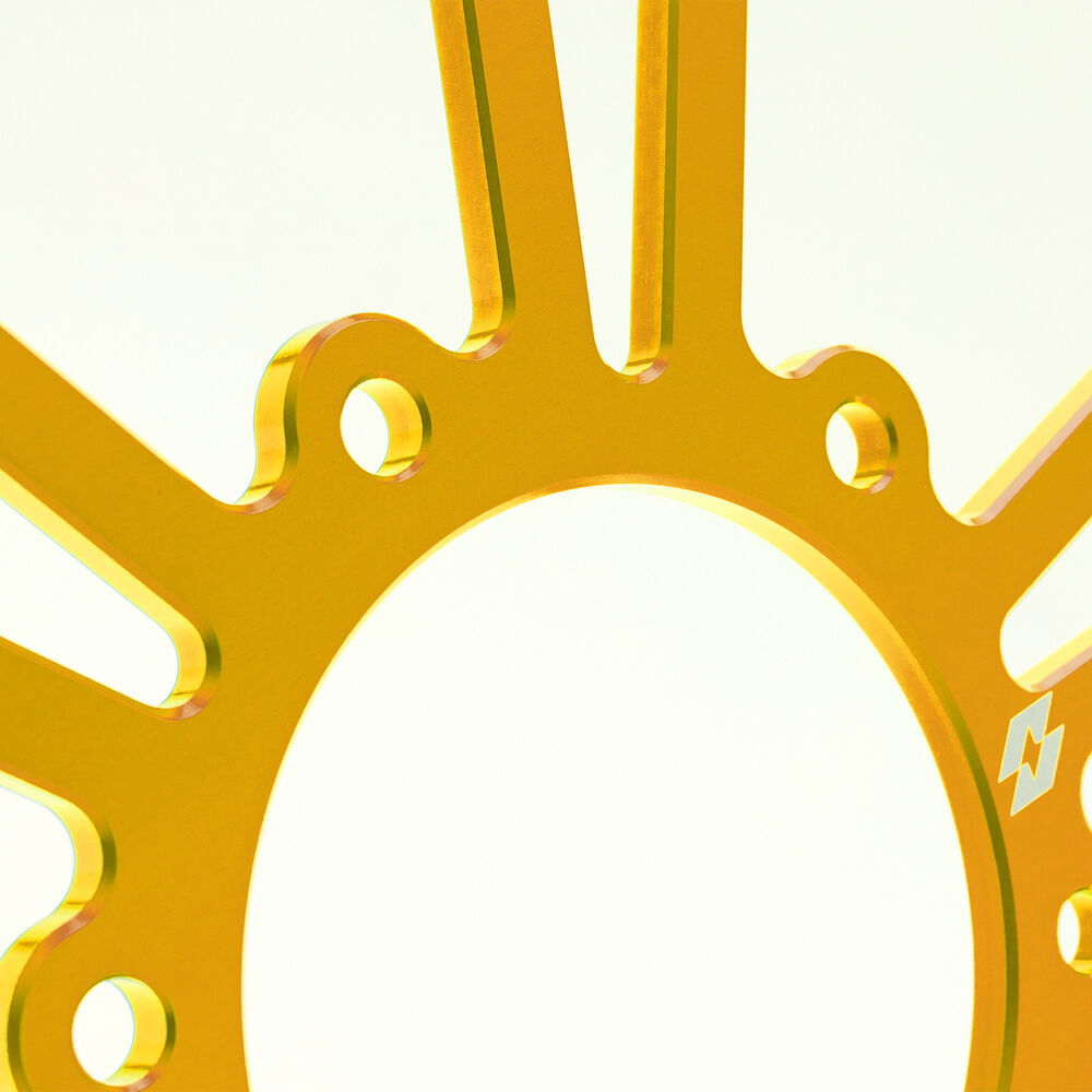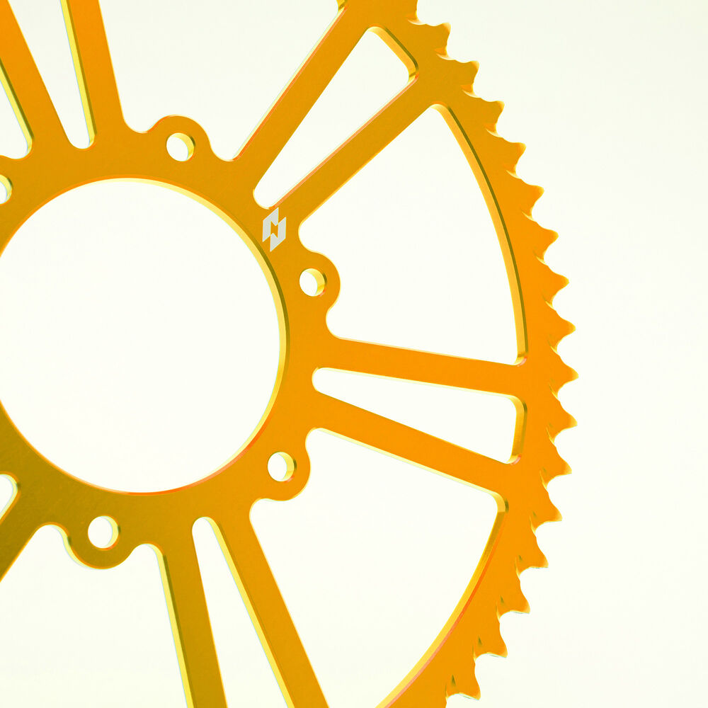 Choose from sprocket sizes ranging from 44T to 60T, providing you with a variety of options to customize your ride. Additionally, our sprockets come in eight vibrant colors, allowing you to make a bold statement while optimizing your bikes performance.