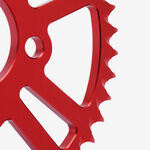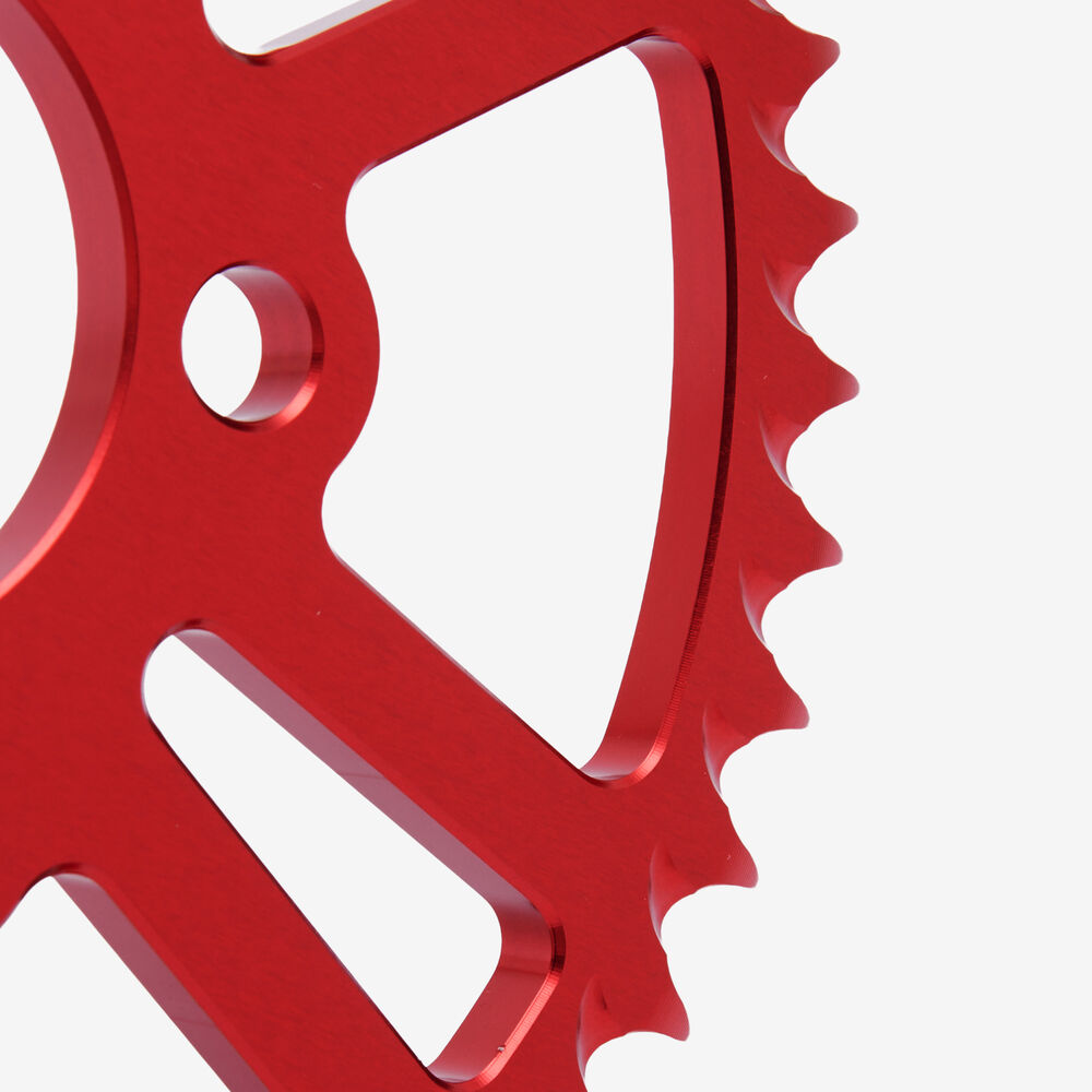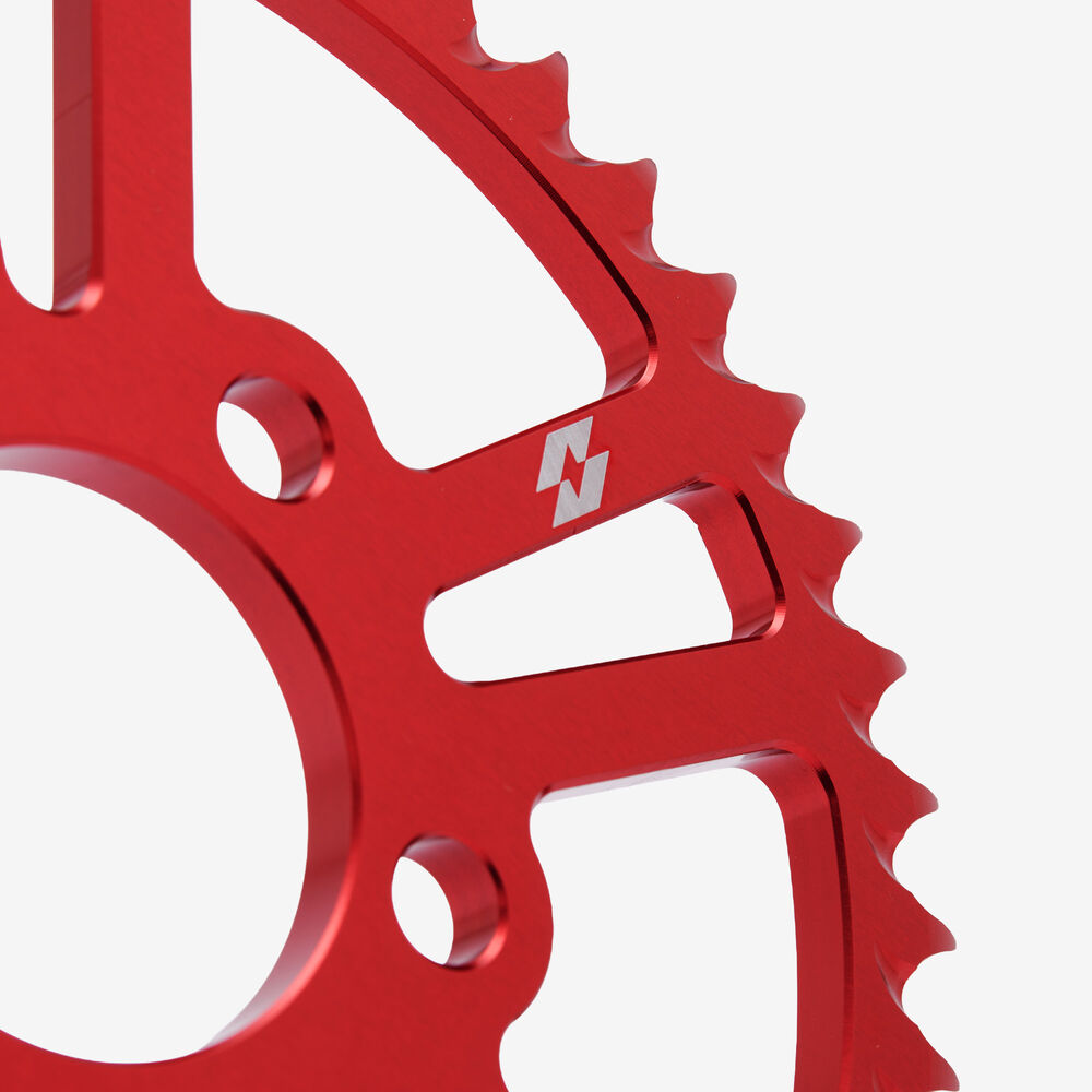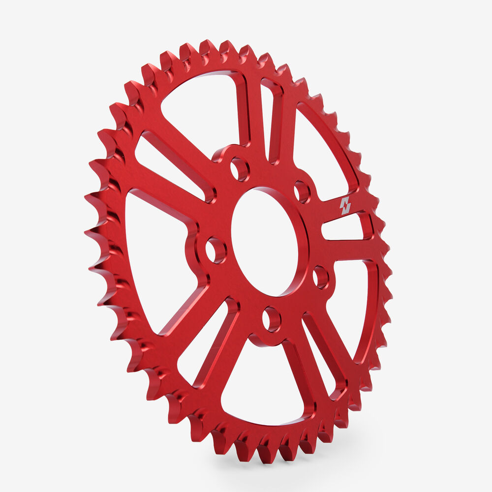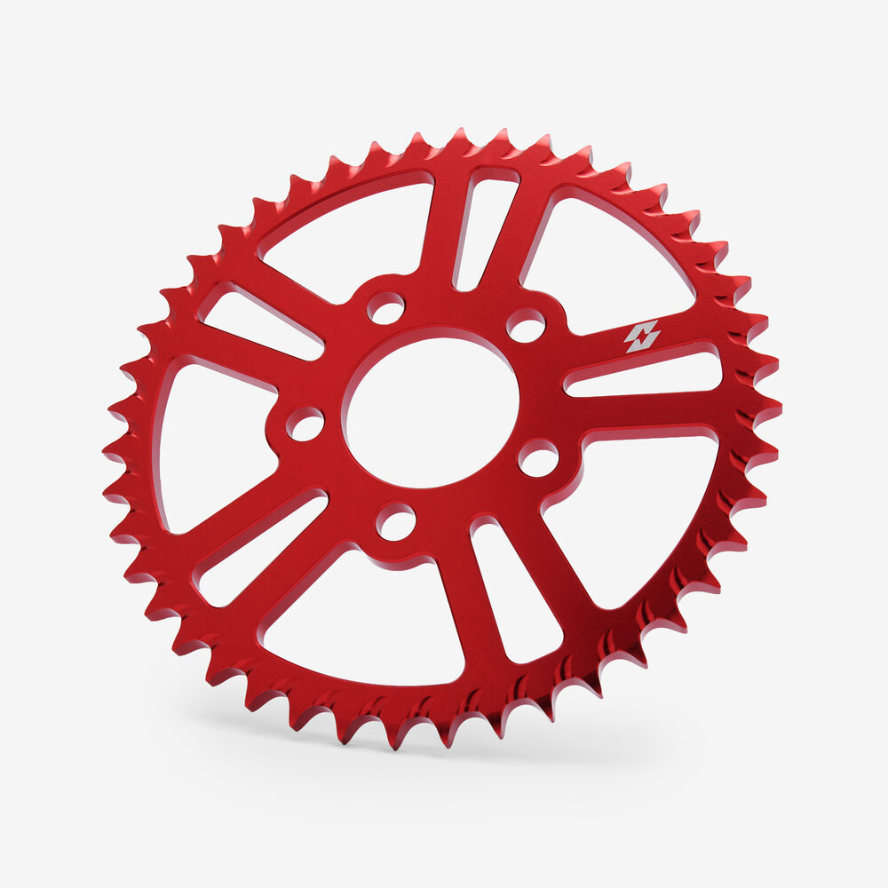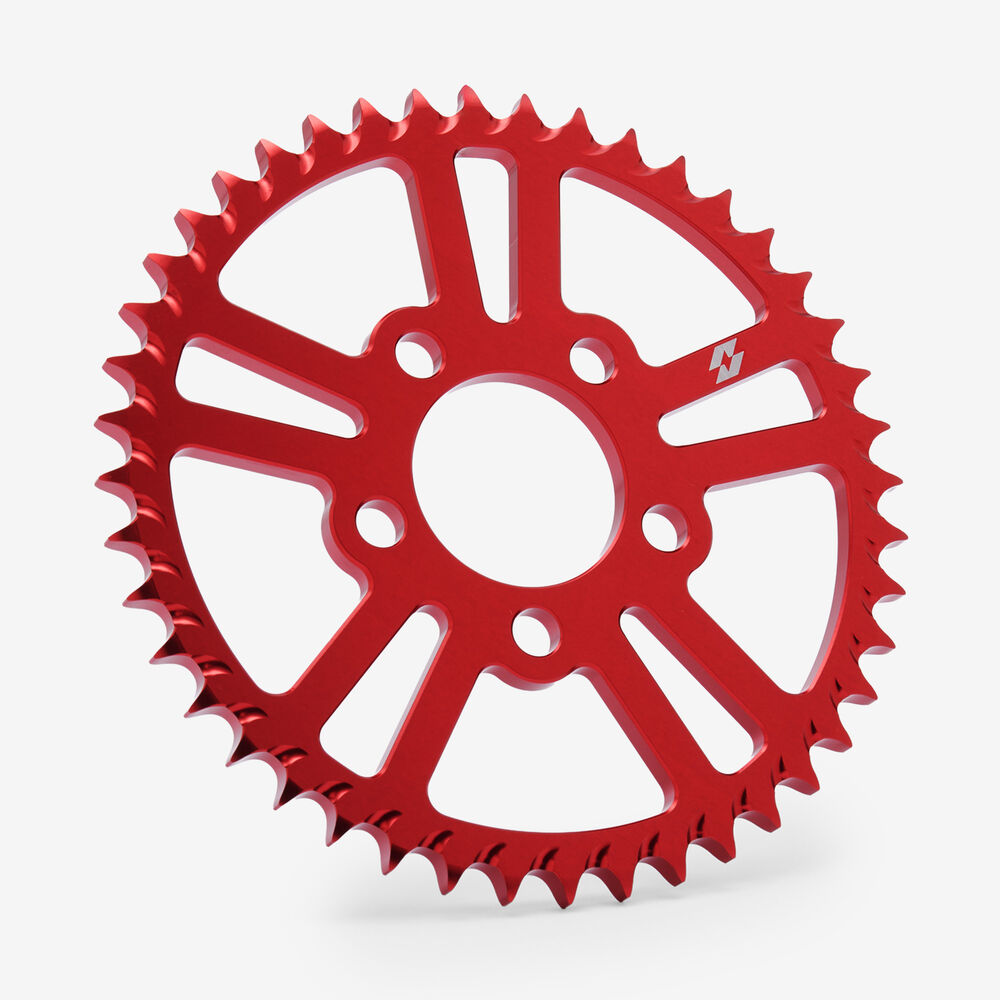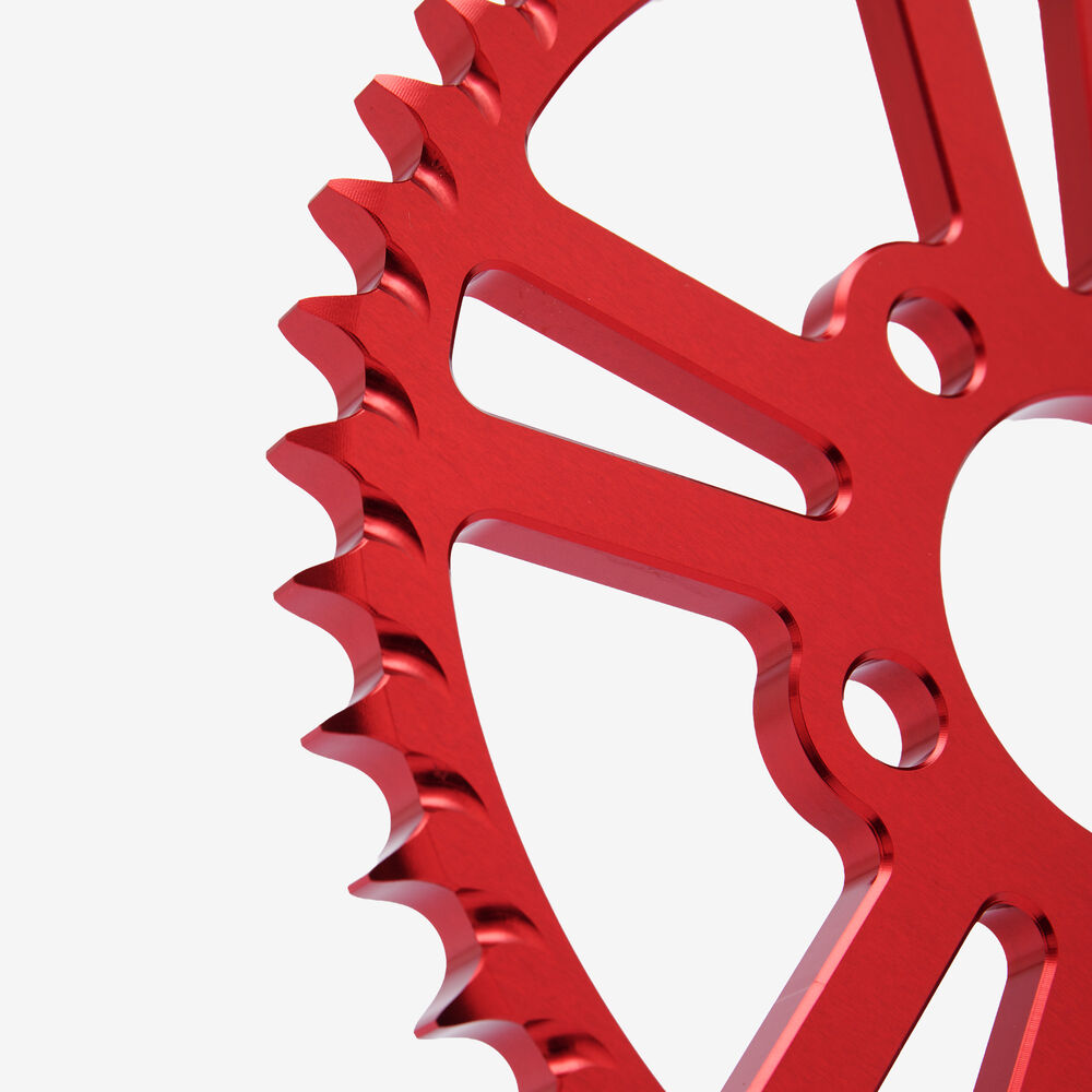The rear sprocket on a motorcycle is a key component of the drivetrain system, located on the rear wheel hub. It works in conjunction with the front sprocket and the chain to transmit power from the engine to the rear wheel, propelling the motorcycle forward. The rear sprocket features a series of teeth that mesh with the chain, and its size affects the motorcycle’s gearing and performance characteristics. A larger rear sprocket increases torque and acceleration, while a smaller one improves top speed and fuel efficiency. Proper maintenance and alignment of the rear sprocket are essential for optimal drivetrain performance and safety.