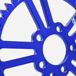 The rear sprocket on a motorcycle is a key component of the drivetrain system, located on the rear wheel hub. It works in conjunction with the front sprocket and the chain to transmit power from the engine to the rear wheel, propelling the motorcycle forward. The rear sprocket features a series of teeth that mesh with the chain, and its size affects the motorcycle’s gearing and performance characteristics. A larger rear sprocket increases torque and acceleration, while a smaller one improves top speed and fuel efficiency. Proper maintenance and alignment of the rear sprocket are essential for optimal drivetrain performance and safety.