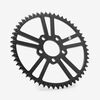 The rear sprocket on a motorcycle is a key component of the drivetrain system, located on the rear wheel hub. It works in conjunction with the front sprocket and the chain to transmit power from the engine to the rear wheel, propelling the motorcycle forward. The rear sprocket features a series of teeth that mesh with the chain, and its size affects the motorcycle’s gearing and performance characteristics. A larger rear sprocket increases torque and acceleration, while a smaller one improves top speed and fuel efficiency. Proper maintenance and alignment of the rear sprocket are essential for optimal drivetrain performance and safety.