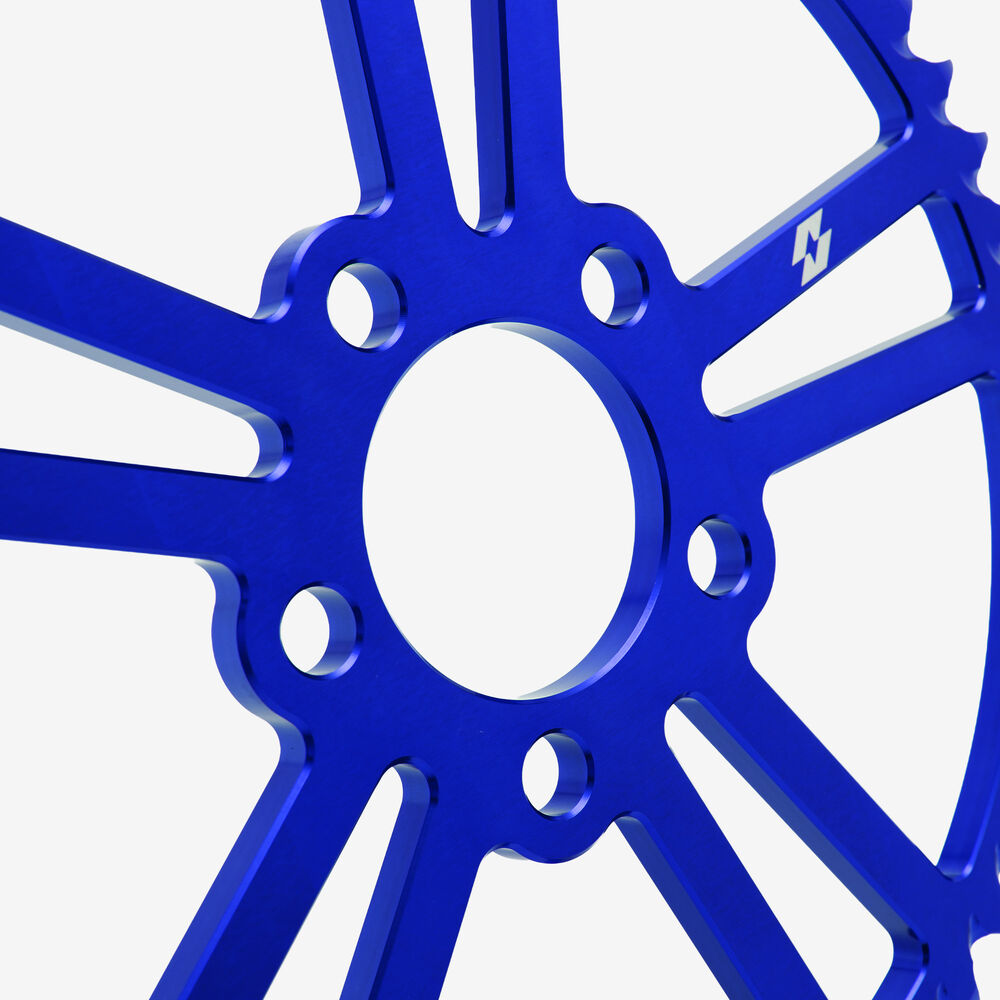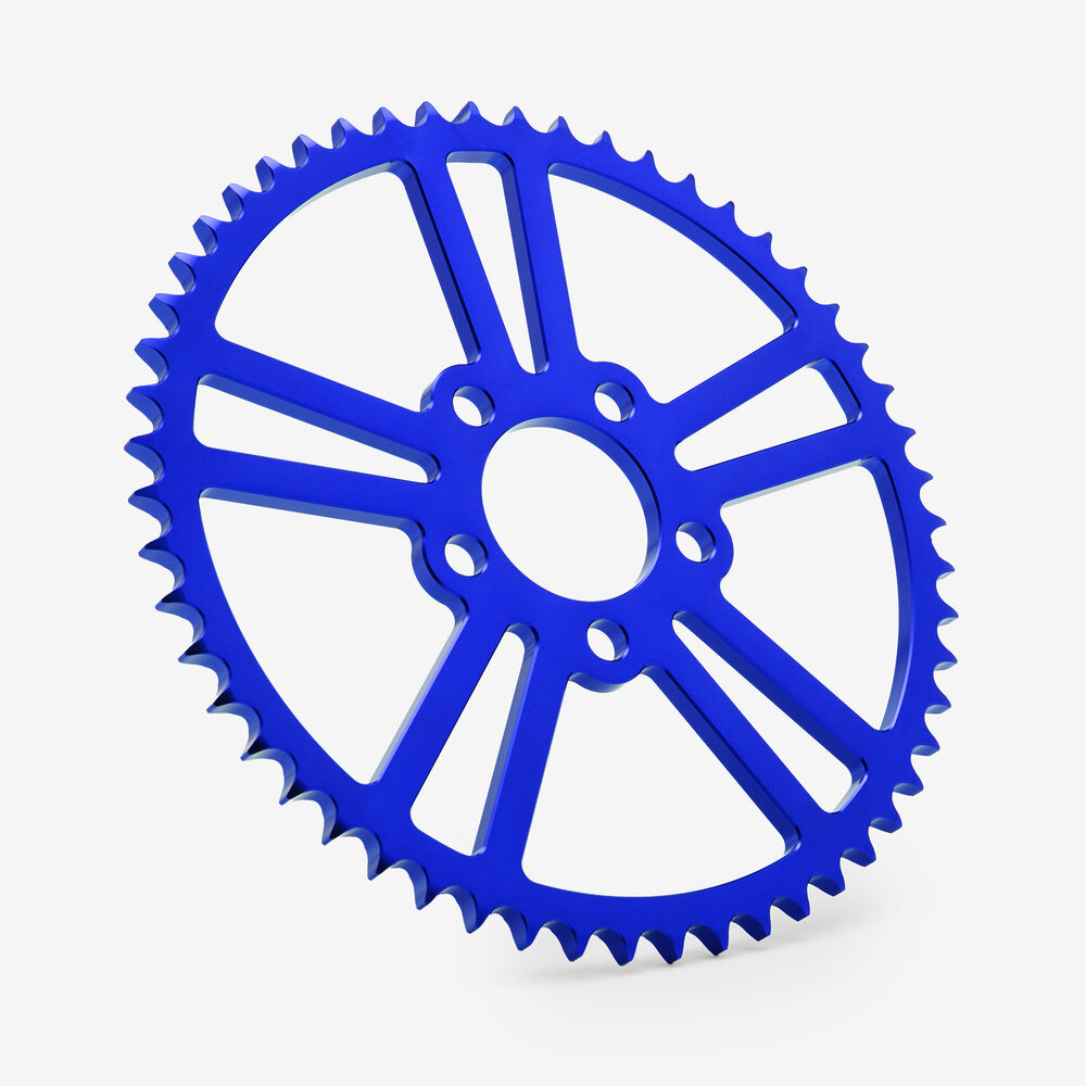 The rear sprocket on a motorcycle is a key component of the drivetrain system, located on the rear wheel hub. It works in conjunction with the front sprocket and the chain to transmit power from the engine to the rear wheel, propelling the motorcycle forward. The rear sprocket features a series of teeth that mesh with the chain, and its size affects the motorcycle’s gearing and performance characteristics. A larger rear sprocket increases torque and acceleration, while a smaller one improves top speed and fuel efficiency. Proper maintenance and alignment of the rear sprocket are essential for optimal drivetrain performance and safety.