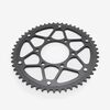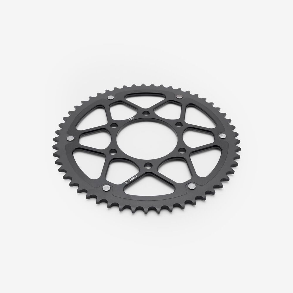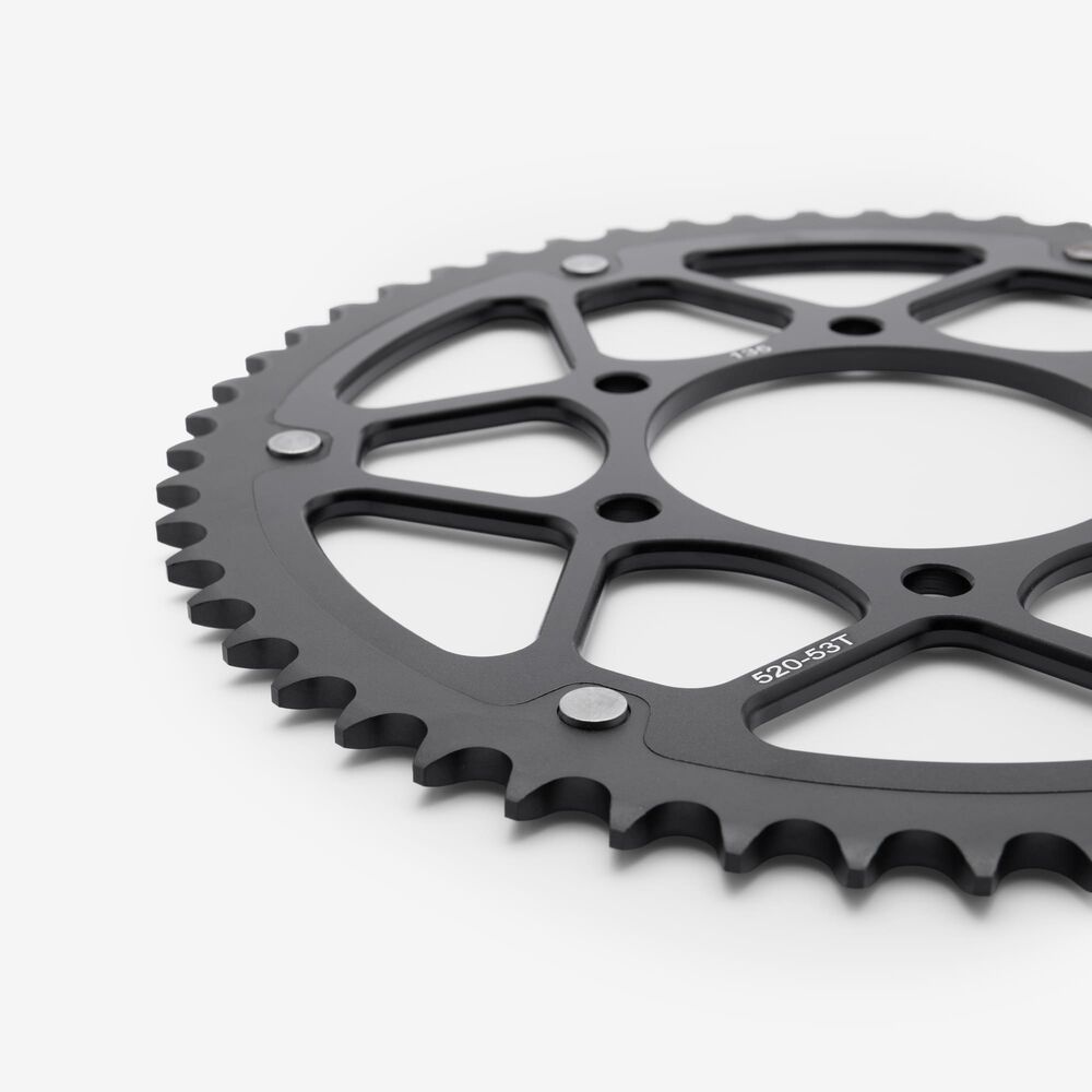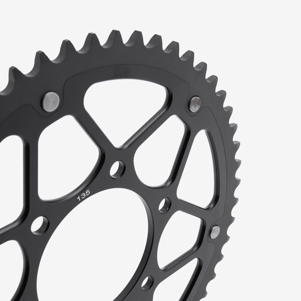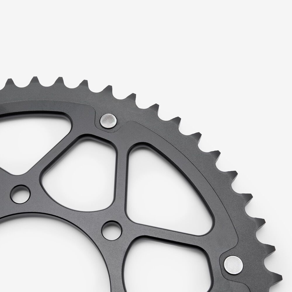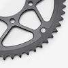 The rear sprocket on a motorcycle is a key component of the drivetrain system, located on the rear wheel hub. It works in conjunction with the front sprocket and the chain to transmit power from the engine to the rear wheel, propelling the motorcycle forward. The rear sprocket features a series of teeth that mesh with the chain, and its size affects the motorcycle’s gearing and performance characteristics. A larger rear sprocket increases torque and acceleration, while a smaller one improves top speed and fuel efficiency. Proper maintenance and alignment of the rear sprocket are essential for optimal drivetrain performance and safety.