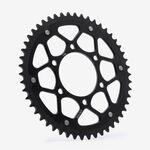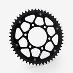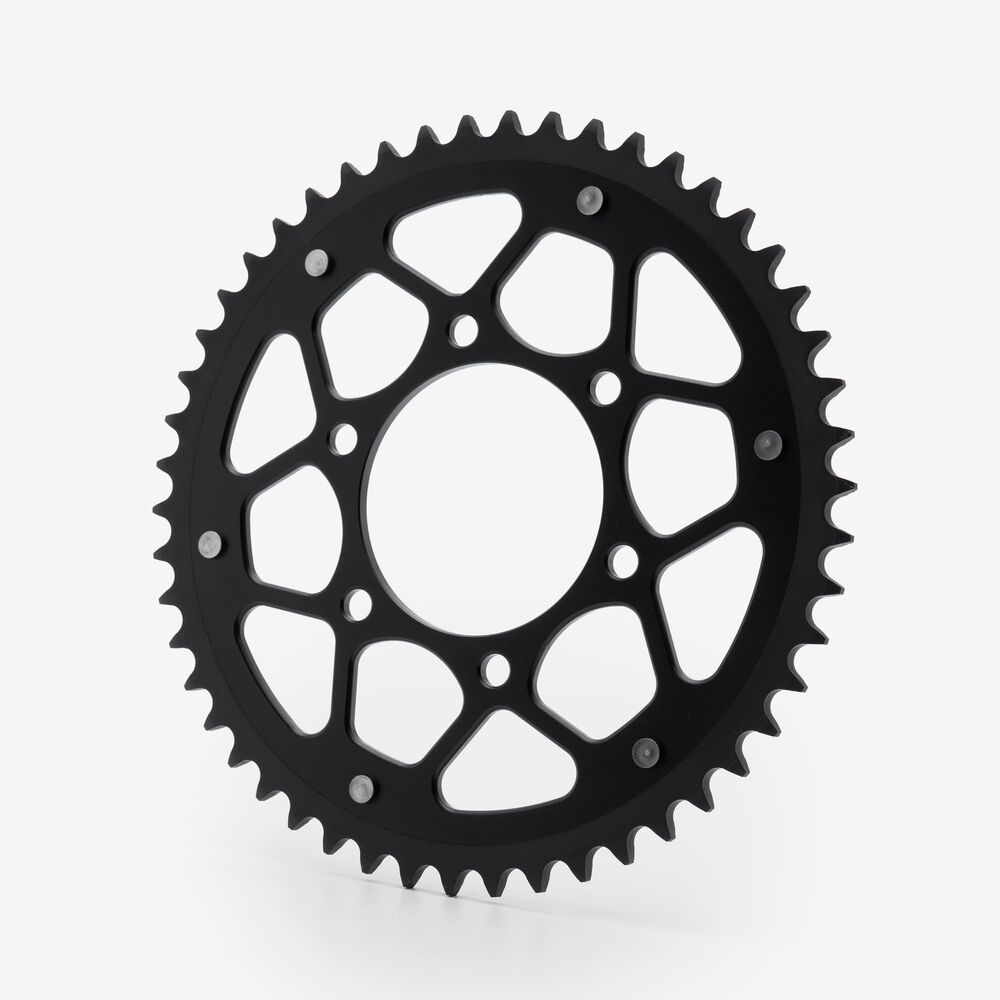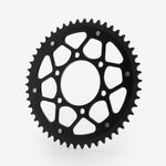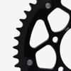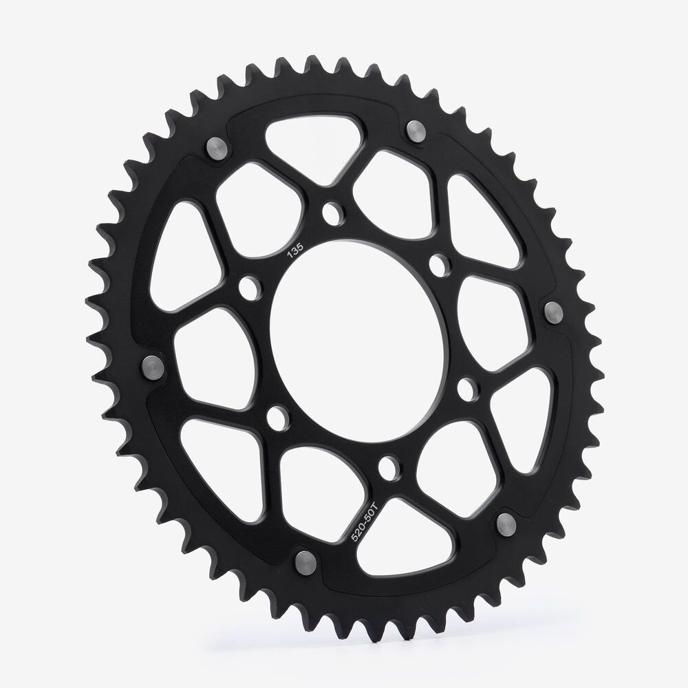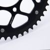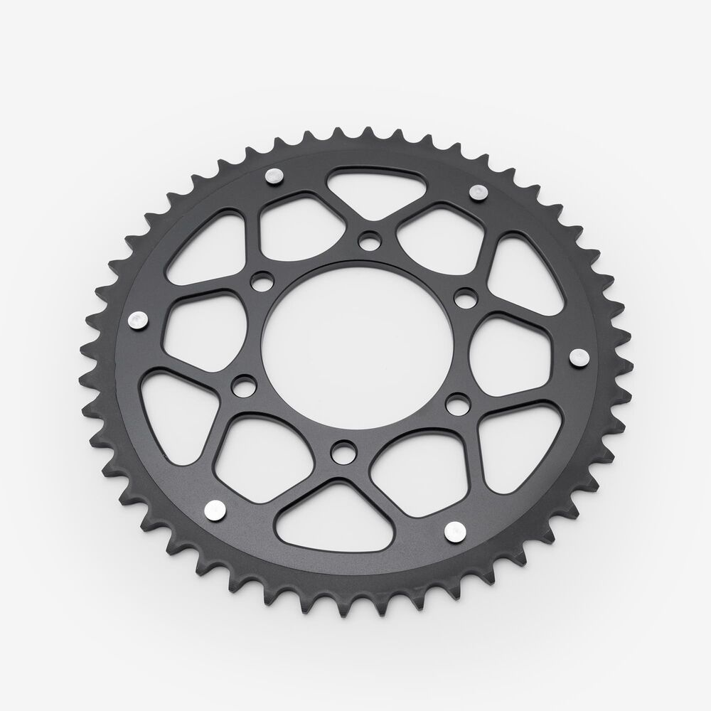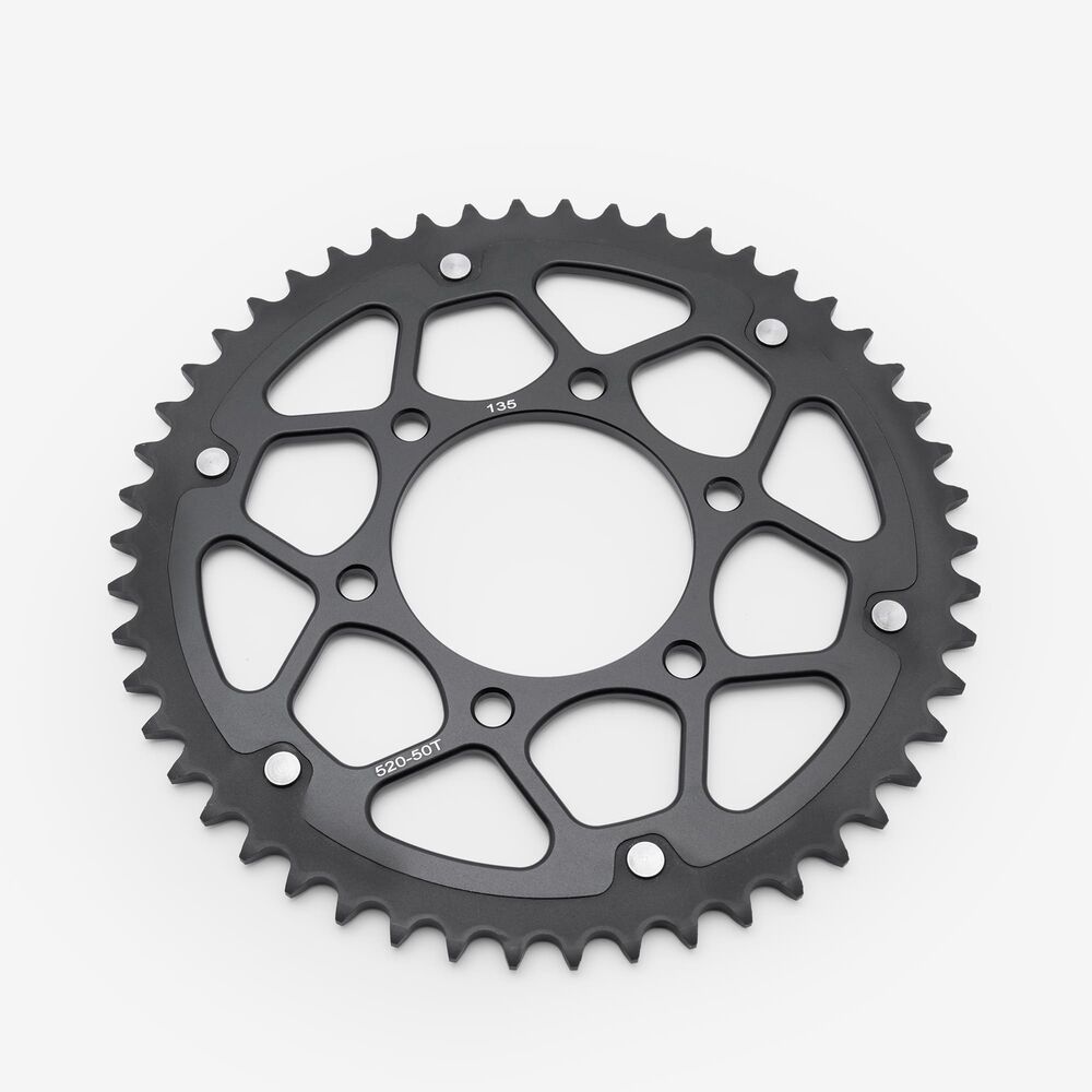 The rear sprocket on a motorcycle is a key component of the drivetrain system, located on the rear wheel hub. It works in conjunction with the front sprocket and the chain to transmit power from the engine to the rear wheel, propelling the motorcycle forward. The rear sprocket features a series of teeth that mesh with the chain, and its size affects the motorcycle’s gearing and performance characteristics. A larger rear sprocket increases torque and acceleration, while a smaller one improves top speed and fuel efficiency. Proper maintenance and alignment of the rear sprocket are essential for optimal drivetrain performance and safety.