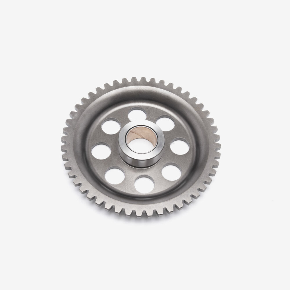 The starter sprocket is a component in a motorcycle's starting system that interacts with the starter motor to initiate engine cranking. Located typically on the engine’s crankshaft or the starter motor shaft, it engages with the starter motor's drive mechanism (often through a starter clutch) to turn the engine over when the starter is activated. Once the engine starts and reaches operational speed, the starter sprocket disengages, allowing the engine to run independently. This component is essential for smooth engine start-up and reliable starting performance.