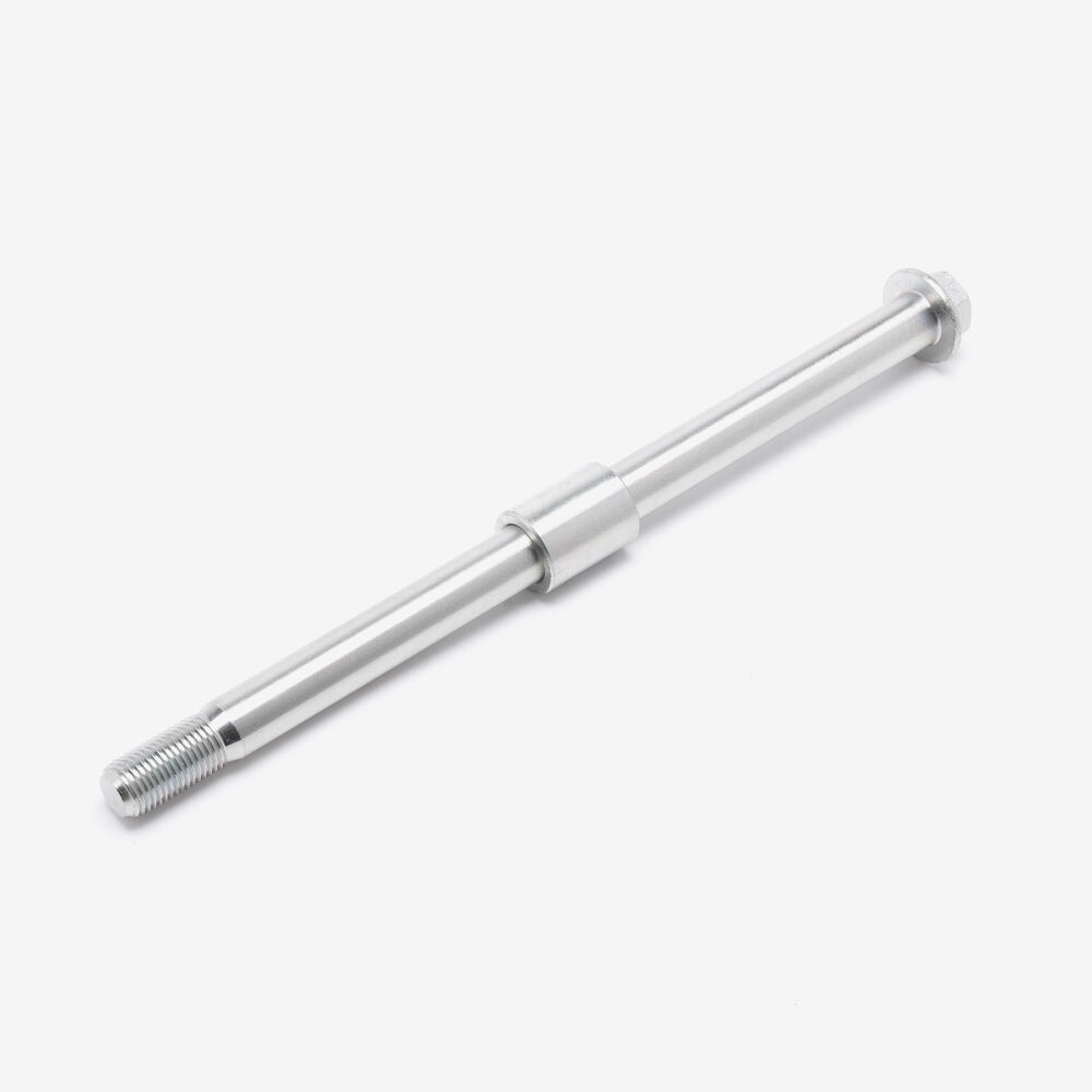 The wheel spindle, also known as the wheel axle, is a critical component that supports and secures the motorcycle wheel to the fork or swingarm. It passes through the center of the wheel hub and is mounted to the motorcycle's frame or suspension components. The spindle allows the wheel to rotate smoothly while maintaining proper alignment and stability. It is typically made from high-strength materials like steel or aluminum to withstand the stresses and loads experienced during riding. Proper installation and maintenance of the wheel spindle are essential for safe and efficient motorcycle operation.