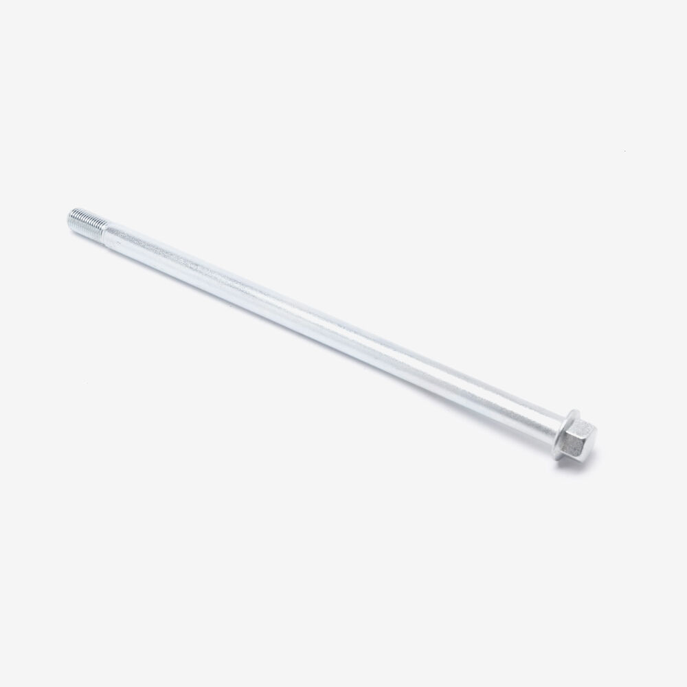 The wheel spindle, also known as the wheel axle, is a critical component that supports and secures the motorcycle wheel to the fork or swingarm. It passes through the center of the wheel hub and is mounted to the motorcycle's frame or suspension components. The spindle allows the wheel to rotate smoothly while maintaining proper alignment and stability. It is typically made from high-strength materials like steel or aluminum to withstand the stresses and loads experienced during riding. Proper installation and maintenance of the wheel spindle are essential for safe and efficient motorcycle operation.