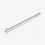 The wheel spindle, also known as the wheel axle, is a critical component that supports and secures the motorcycle wheel to the fork or swingarm. It passes through the center of the wheel hub and is mounted to the motorcycle's frame or suspension components. The spindle allows the wheel to rotate smoothly while maintaining proper alignment and stability. It is typically made from high-strength materials like steel or aluminum to withstand the stresses and loads experienced during riding. Proper installation and maintenance of the wheel spindle are essential for safe and efficient motorcycle operation.