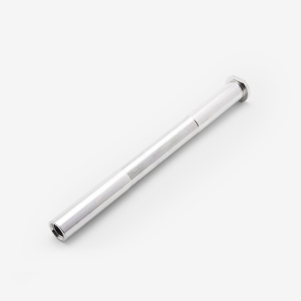 The wheel spindle, also known as the wheel axle, is a critical component that supports and secures the motorcycle wheel to the fork or swingarm. It passes through the center of the wheel hub and is mounted to the motorcycle's frame or suspension components. The spindle allows the wheel to rotate smoothly while maintaining proper alignment and stability. It is typically made from high-strength materials like steel or aluminum to withstand the stresses and loads experienced during riding. Proper installation and maintenance of the wheel spindle are essential for safe and efficient motorcycle operation.
