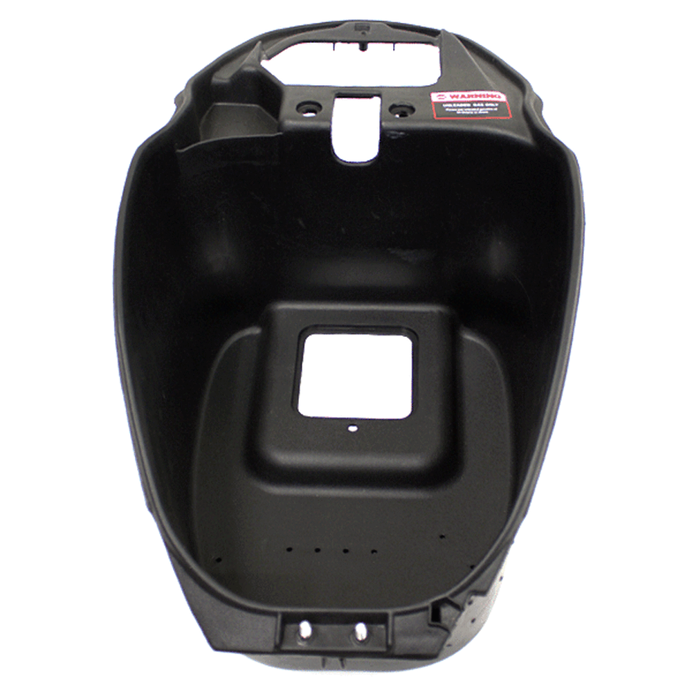 The seat bucket on a motorcycle is a structural component that forms the base or frame of the seat. It provides a rigid support structure that the seat padding and cover are mounted onto. The seat bucket is typically made from durable materials such as plastic, fiberglass, or metal, and is designed to fit precisely onto the motorcycle's frame or subframe. It helps maintain the shape and integrity of the seat, ensuring comfort and stability for the rider.