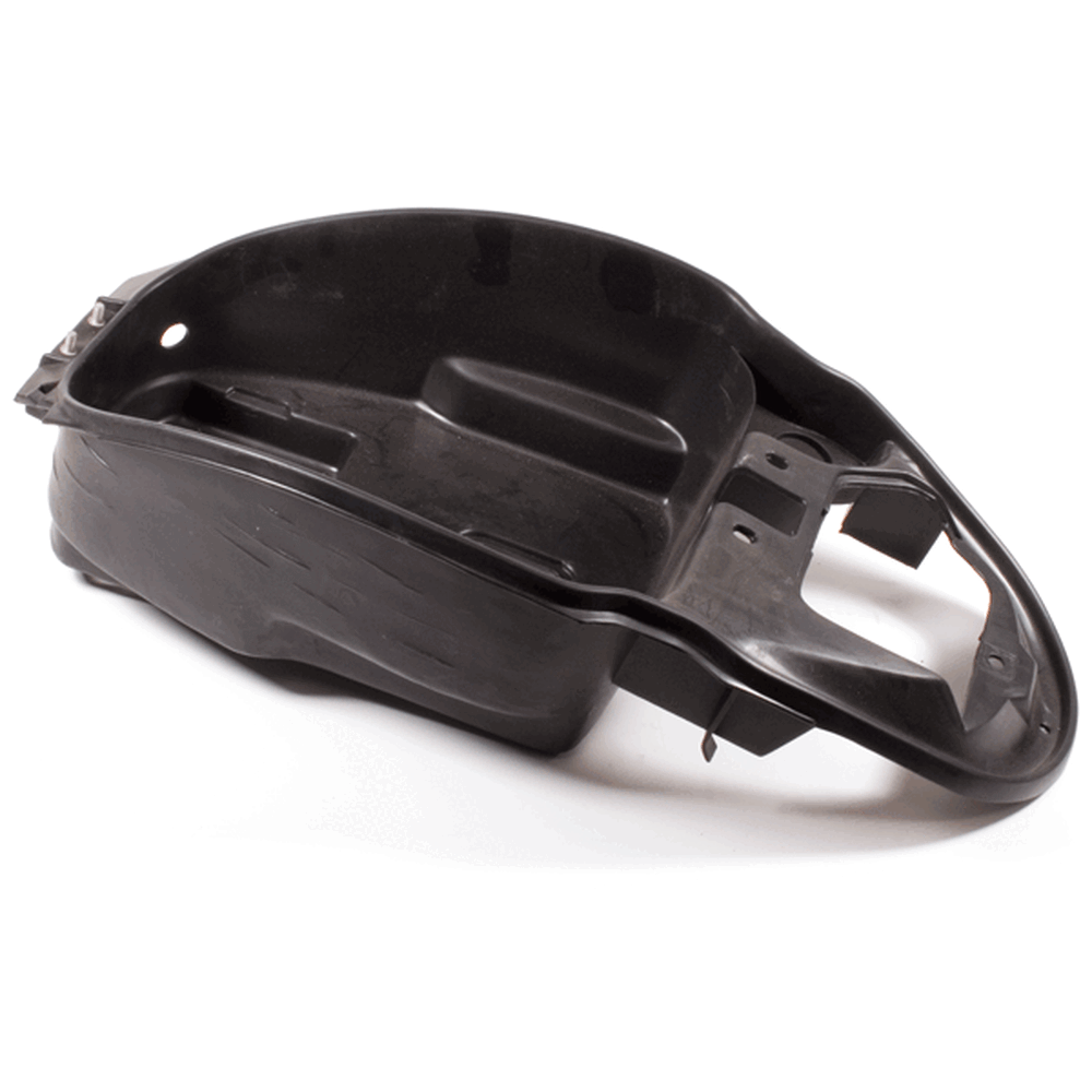 The seat bucket on a motorcycle is a structural component that forms the base or frame of the seat. It provides a rigid support structure that the seat padding and cover are mounted onto. The seat bucket is typically made from durable materials such as plastic, fiberglass, or metal, and is designed to fit precisely onto the motorcycle's frame or subframe. It helps maintain the shape and integrity of the seat, ensuring comfort and stability for the rider.