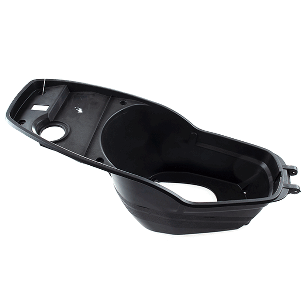 The seat bucket on a motorcycle is a structural component that forms the base or frame of the seat. It provides a rigid support structure that the seat padding and cover are mounted onto. The seat bucket is typically made from durable materials such as plastic, fiberglass, or metal, and is designed to fit precisely onto the motorcycle's frame or subframe. It helps maintain the shape and integrity of the seat, ensuring comfort and stability for the rider.