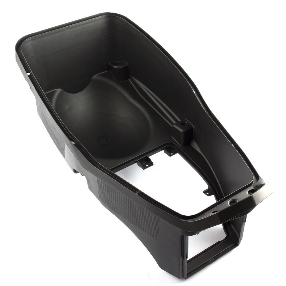 The seat bucket on a motorcycle is a structural component that forms the base or frame of the seat. It provides a rigid support structure that the seat padding and cover are mounted onto. The seat bucket is typically made from durable materials such as plastic, fiberglass, or metal, and is designed to fit precisely onto the motorcycle's frame or subframe. It helps maintain the shape and integrity of the seat, ensuring comfort and stability for the rider.