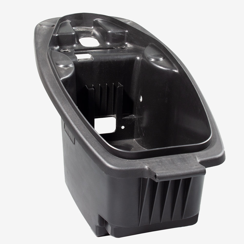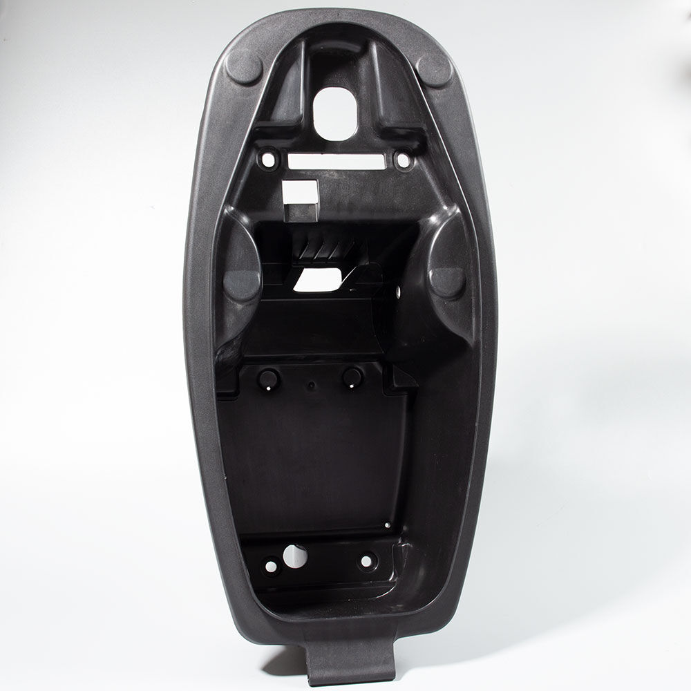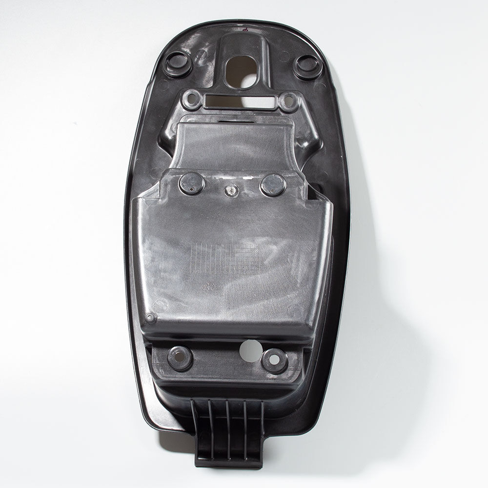 The seat bucket on a motorcycle is a structural component that forms the base or frame of the seat. It provides a rigid support structure that the seat padding and cover are mounted onto. The seat bucket is typically made from durable materials such as plastic, fiberglass, or metal, and is designed to fit precisely onto the motorcycle's frame or subframe. It helps maintain the shape and integrity of the seat, ensuring comfort and stability for the rider.