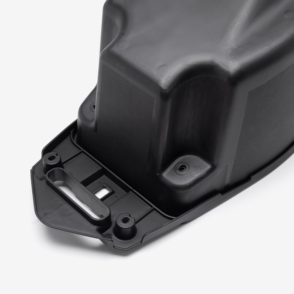 The seat bucket on a motorcycle is a structural component that forms the base or frame of the seat. It provides a rigid support structure that the seat padding and cover are mounted onto. The seat bucket is typically made from durable materials such as plastic, fiberglass, or metal, and is designed to fit precisely onto the motorcycle's frame or subframe. It helps maintain the shape and integrity of the seat, ensuring comfort and stability for the rider.