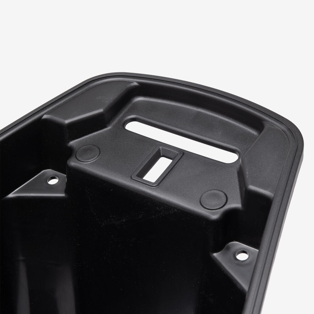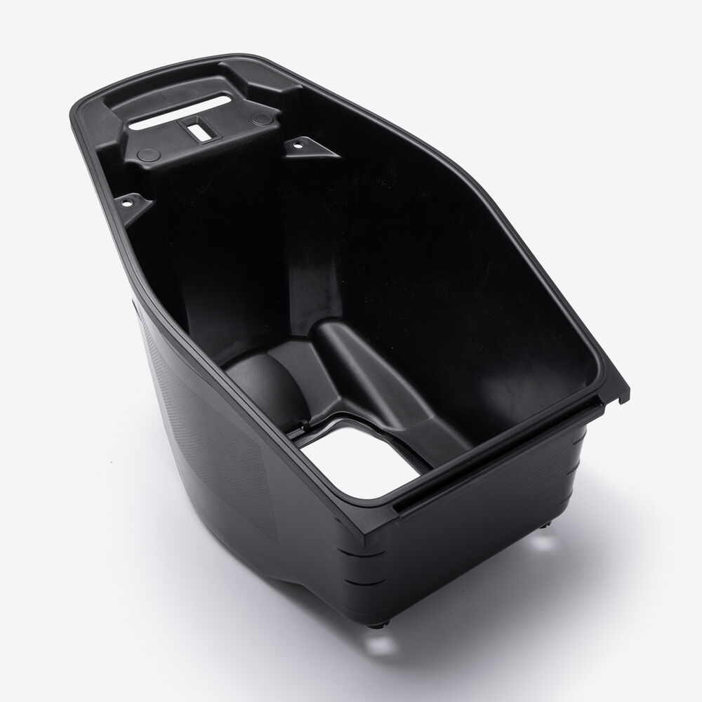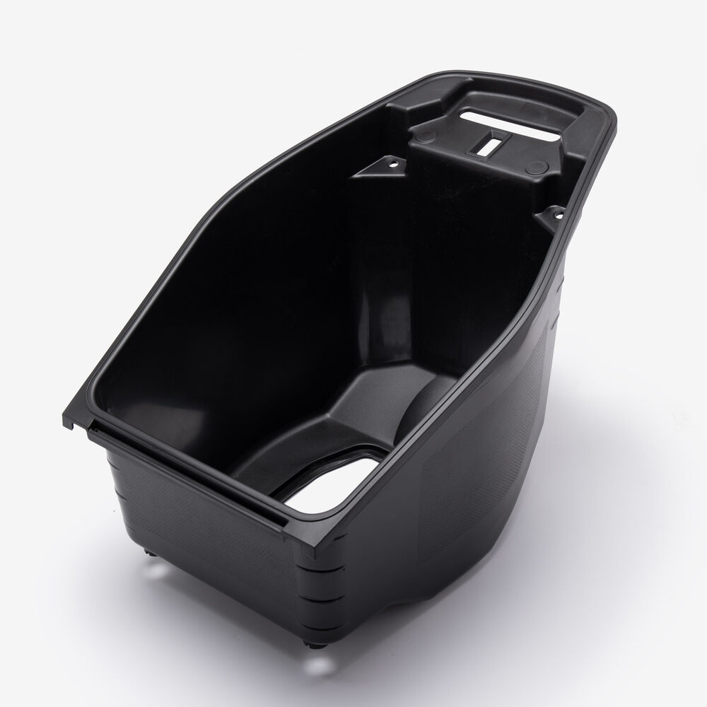 The seat bucket on a motorcycle is a structural component that forms the base or frame of the seat. It provides a rigid support structure that the seat padding and cover are mounted onto. The seat bucket is typically made from durable materials such as plastic, fiberglass, or metal, and is designed to fit precisely onto the motorcycle's frame or subframe. It helps maintain the shape and integrity of the seat, ensuring comfort and stability for the rider.