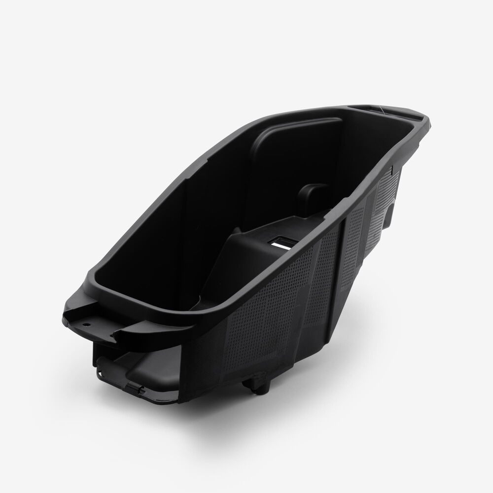 The seat bucket on a motorcycle is a structural component that forms the base or frame of the seat. It provides a rigid support structure that the seat padding and cover are mounted onto. The seat bucket is typically made from durable materials such as plastic, fiberglass, or metal, and is designed to fit precisely onto the motorcycle's frame or subframe. It helps maintain the shape and integrity of the seat, ensuring comfort and stability for the rider.