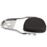 A backrest on a motorcycle is an accessory designed to provide additional comfort and support for the rider or passenger. Typically mounted on the rear of the seat or integrated into the pillion seat, the backrest offers lumbar support and helps reduce fatigue on long rides. It can be adjustable or fixed and is often padded for added comfort. The backrest enhances the riding experience by improving posture and stability, especially for passengers, and can also contribute to a more relaxed and enjoyable journey.