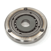 The starter clutch, also known as the one-way clutch or starter drive, is a component in a motorcycle's starting system that allows the starter motor to crank the engine and then disengages once the engine starts. It consists of a set of gears or rollers that engage with the engine's flywheel or crankshaft to turn the engine over. Once the engine starts and reaches a certain speed, the starter clutch disengages to prevent the starter motor from turning with the engine. This component ensures smooth engine start-up and prevents potential damage to the starter motor.