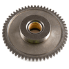 The starter clutch, also known as the one-way clutch or starter drive, is a component in a motorcycle's starting system that allows the starter motor to crank the engine and then disengages once the engine starts. It consists of a set of gears or rollers that engage with the engine's flywheel or crankshaft to turn the engine over. Once the engine starts and reaches a certain speed, the starter clutch disengages to prevent the starter motor from turning with the engine. This component ensures smooth engine start-up and prevents potential damage to the starter motor.