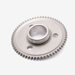 The starter clutch, also known as the one-way clutch or starter drive, is a component in a motorcycle's starting system that allows the starter motor to crank the engine and then disengages once the engine starts. It consists of a set of gears or rollers that engage with the engine's flywheel or crankshaft to turn the engine over. Once the engine starts and reaches a certain speed, the starter clutch disengages to prevent the starter motor from turning with the engine. This component ensures smooth engine start-up and prevents potential damage to the starter motor.
