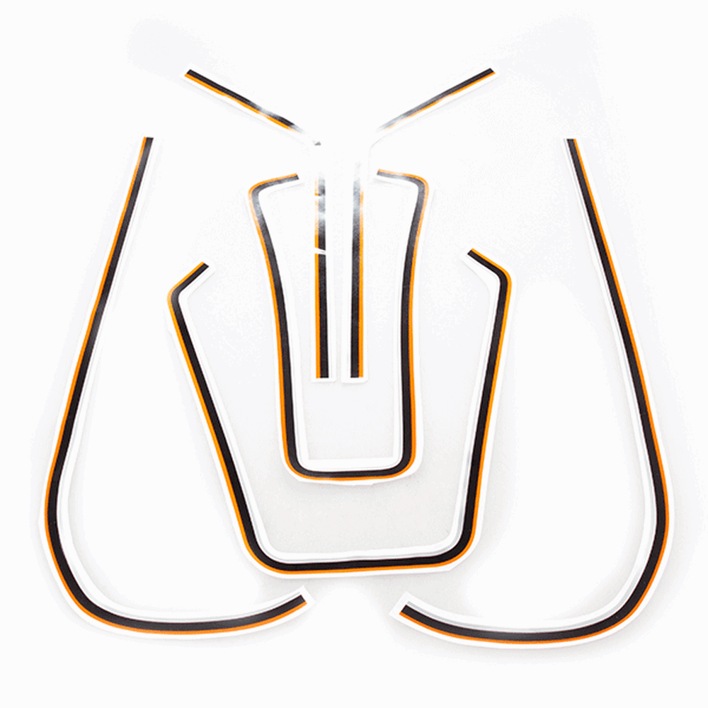 Stickers and decals for motorcycles are adhesive graphics used to customize and decorate the bike's surface. They come in various designs, colors, and patterns, allowing riders to personalize their motorcycles and enhance their visual appeal. Stickers and decals are typically made from durable vinyl or other weather-resistant materials, ensuring they withstand exposure to the elements. They can be applied to various parts of the motorcycle, including the tank, fenders, and fairings, and are easily removable without damaging the underlying surface.