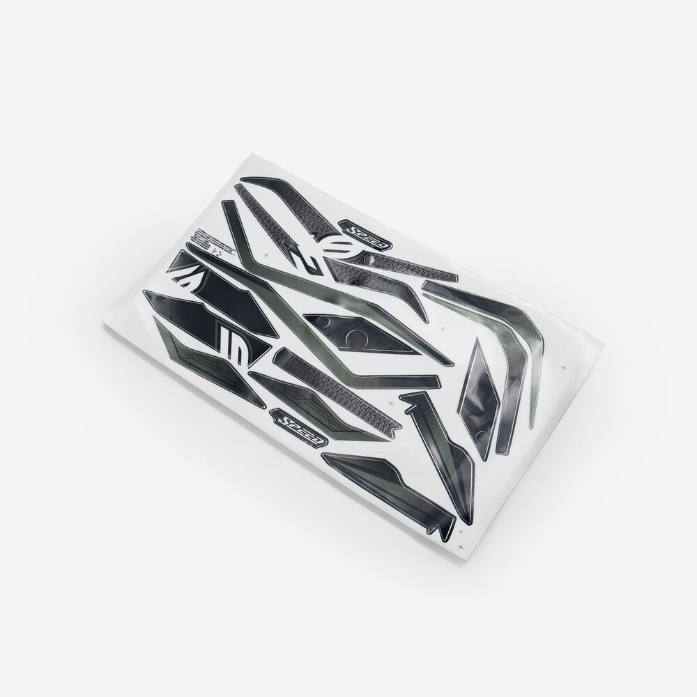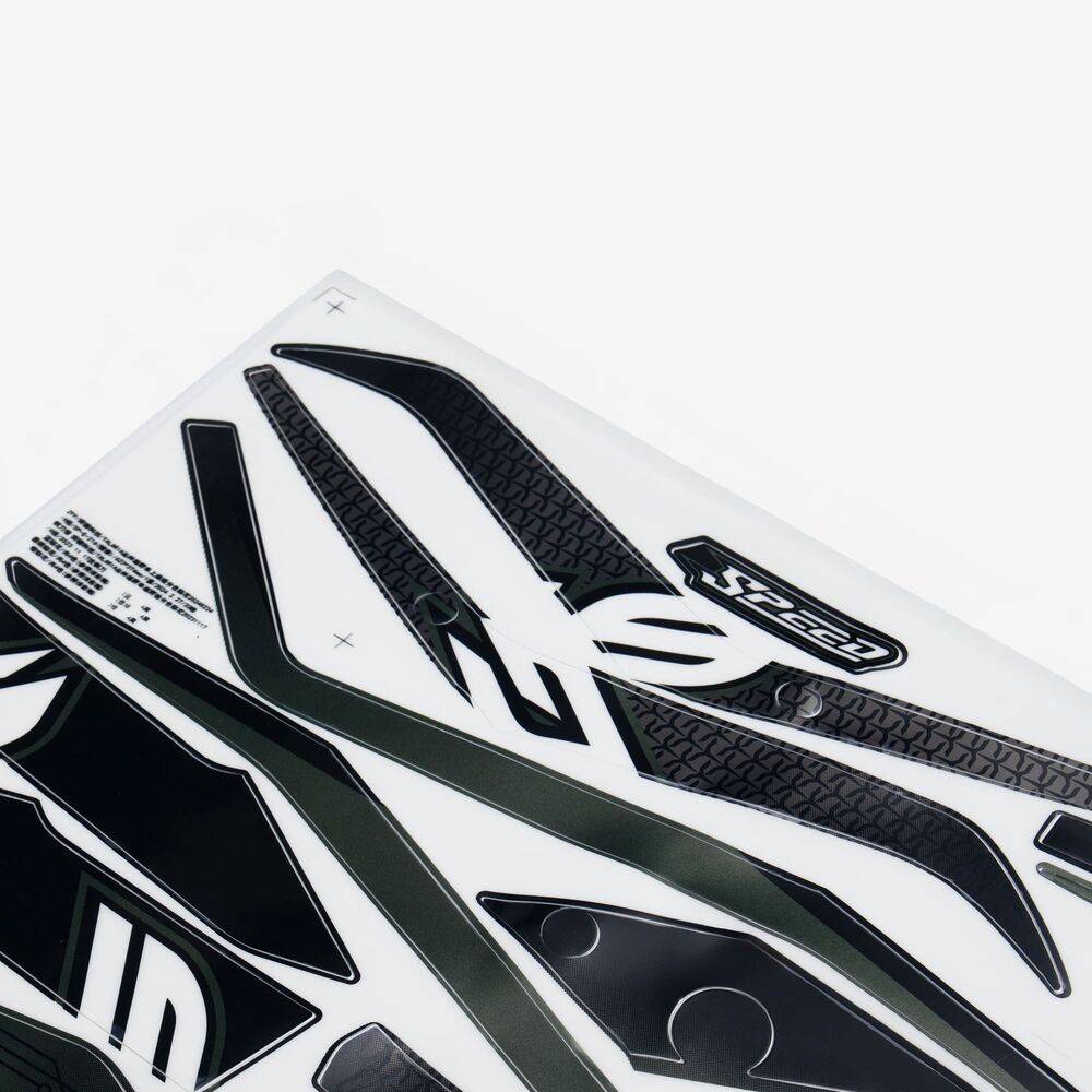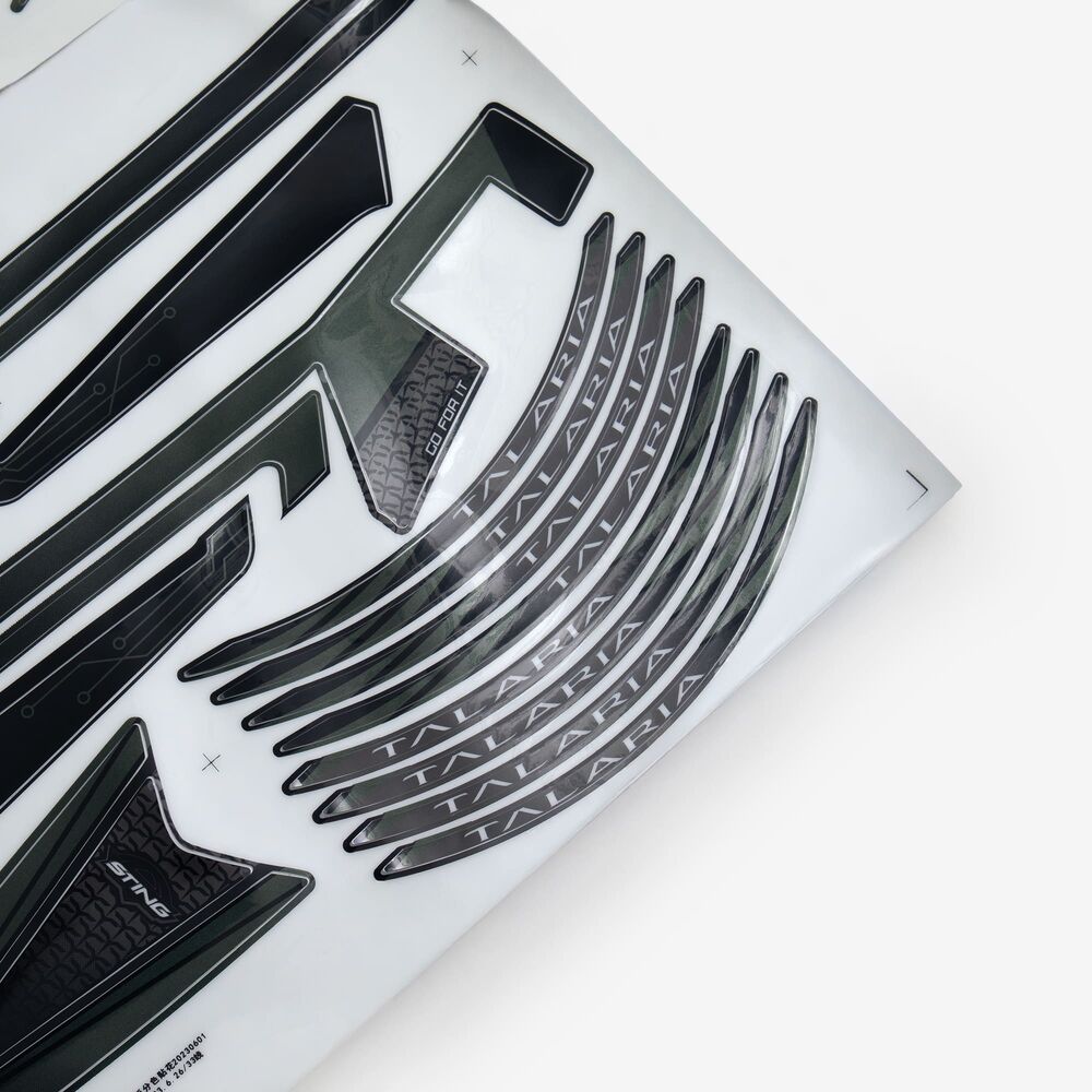 Stickers and decals for motorcycles are adhesive graphics used to customize and decorate the bike's surface. They come in various designs, colors, and patterns, allowing riders to personalize their motorcycles and enhance their visual appeal. Stickers and decals are typically made from durable vinyl or other weather-resistant materials, ensuring they withstand exposure to the elements. They can be applied to various parts of the motorcycle, including the tank, fenders, and fairings, and are easily removable without damaging the underlying surface.