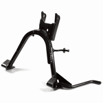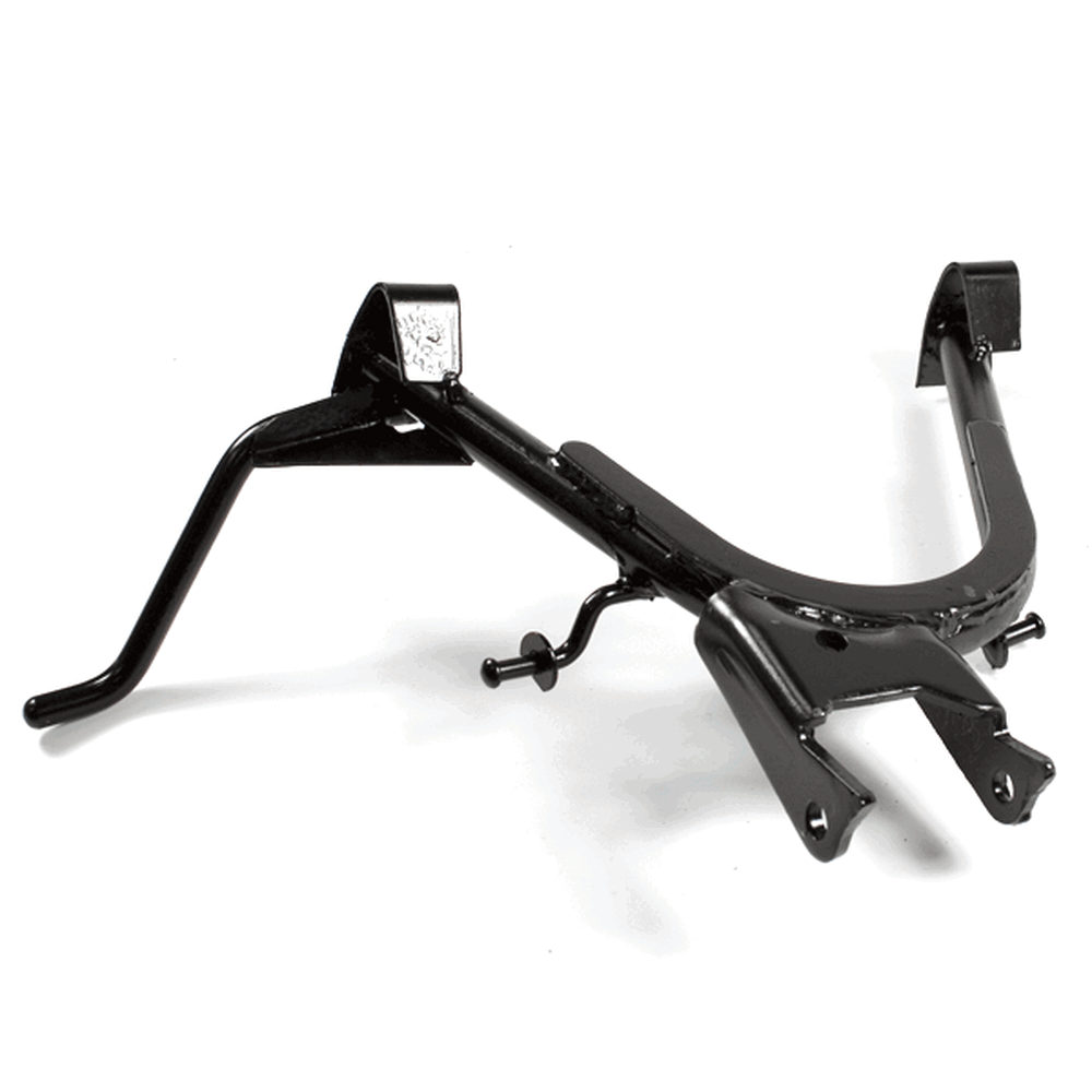 The center stand is a support mechanism on a motorcycle that allows the bike to be parked upright and stable when not in use. Mounted centrally beneath the motorcycle, it consists of two legs that extend downward and a pivot point that enables the stand to be deployed or retracted. When the stand is engaged, it provides a secure base, making it easier to perform maintenance tasks, such as tire changes or chain adjustments, and ensures the motorcycle remains upright and balanced while parked. The center stand is typically operated by the rider’s foot and is often equipped with a spring to assist in its retraction.