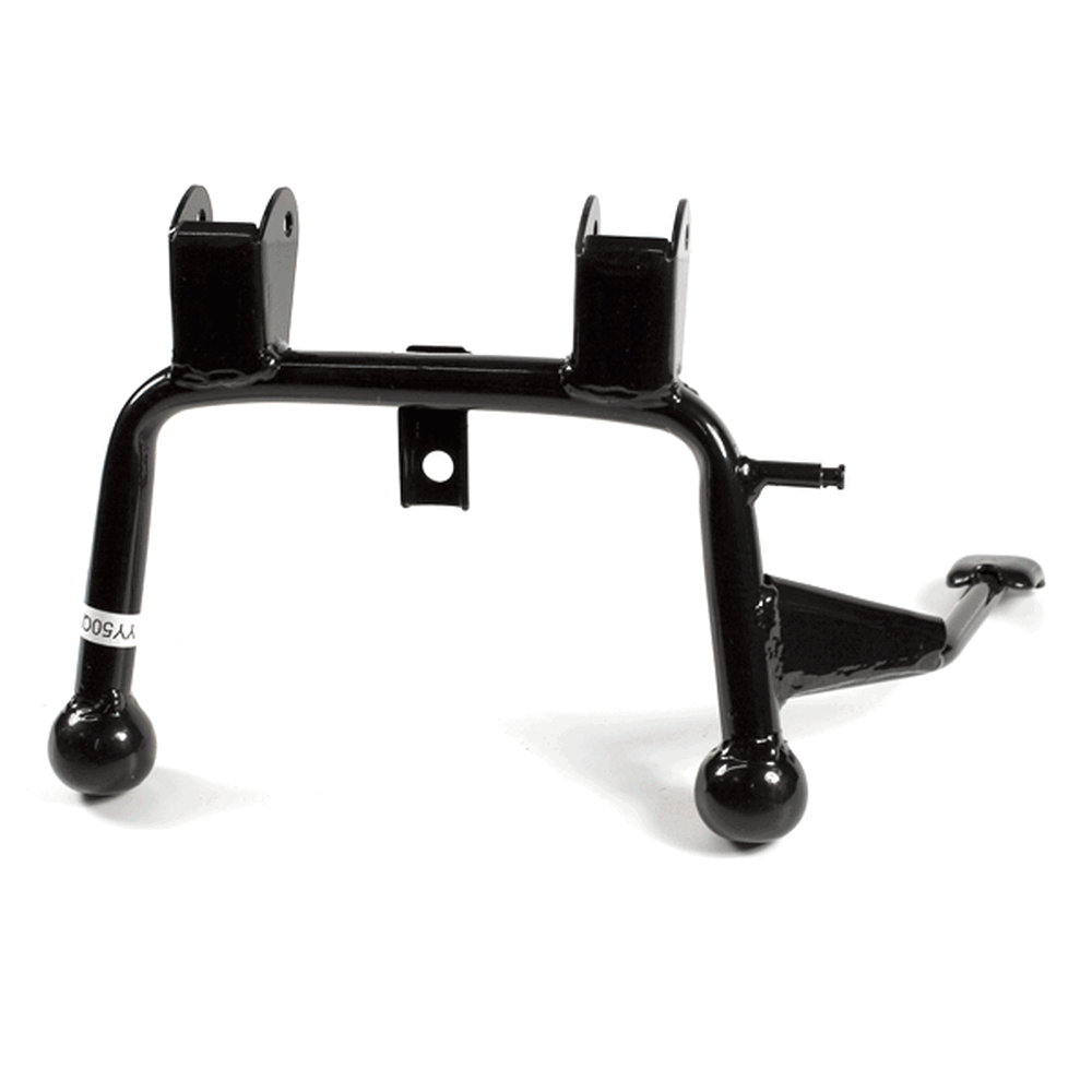 The center stand is a support mechanism on a motorcycle that allows the bike to be parked upright and stable when not in use. Mounted centrally beneath the motorcycle, it consists of two legs that extend downward and a pivot point that enables the stand to be deployed or retracted. When the stand is engaged, it provides a secure base, making it easier to perform maintenance tasks, such as tire changes or chain adjustments, and ensures the motorcycle remains upright and balanced while parked. The center stand is typically operated by the rider’s foot and is often equipped with a spring to assist in its retraction.