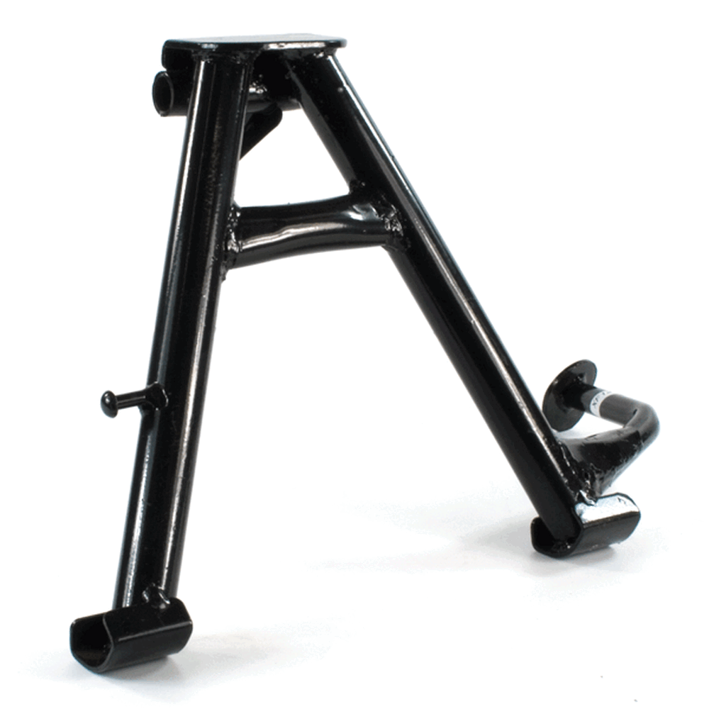 The center stand is a support mechanism on a motorcycle that allows the bike to be parked upright and stable when not in use. Mounted centrally beneath the motorcycle, it consists of two legs that extend downward and a pivot point that enables the stand to be deployed or retracted. When the stand is engaged, it provides a secure base, making it easier to perform maintenance tasks, such as tire changes or chain adjustments, and ensures the motorcycle remains upright and balanced while parked. The center stand is typically operated by the rider’s foot and is often equipped with a spring to assist in its retraction.