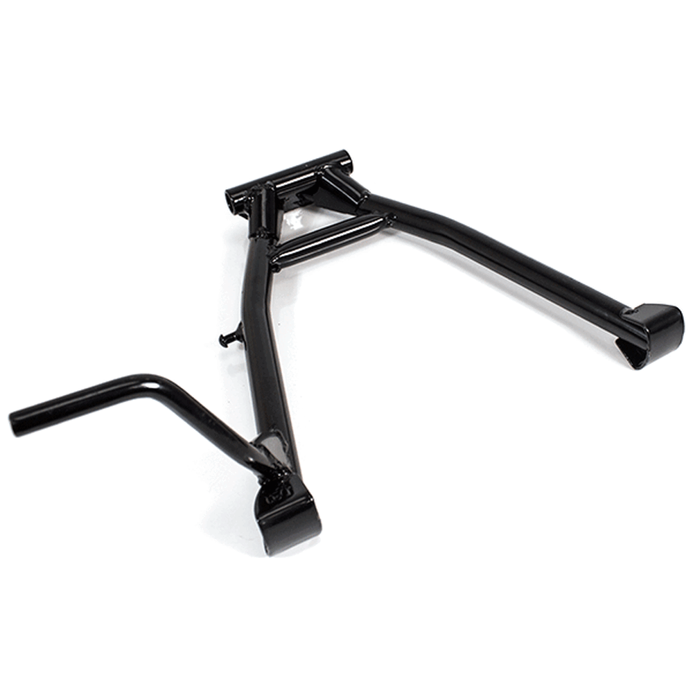 The center stand is a support mechanism on a motorcycle that allows the bike to be parked upright and stable when not in use. Mounted centrally beneath the motorcycle, it consists of two legs that extend downward and a pivot point that enables the stand to be deployed or retracted. When the stand is engaged, it provides a secure base, making it easier to perform maintenance tasks, such as tire changes or chain adjustments, and ensures the motorcycle remains upright and balanced while parked. The center stand is typically operated by the rider’s foot and is often equipped with a spring to assist in its retraction.