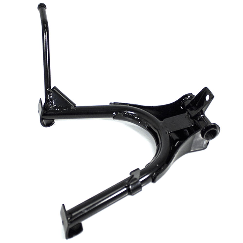 The center stand is a support mechanism on a motorcycle that allows the bike to be parked upright and stable when not in use. Mounted centrally beneath the motorcycle, it consists of two legs that extend downward and a pivot point that enables the stand to be deployed or retracted. When the stand is engaged, it provides a secure base, making it easier to perform maintenance tasks, such as tire changes or chain adjustments, and ensures the motorcycle remains upright and balanced while parked. The center stand is typically operated by the rider’s foot and is often equipped with a spring to assist in its retraction.