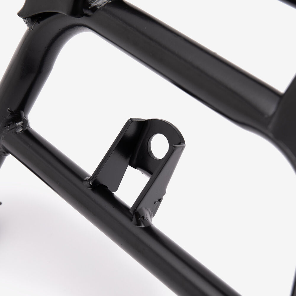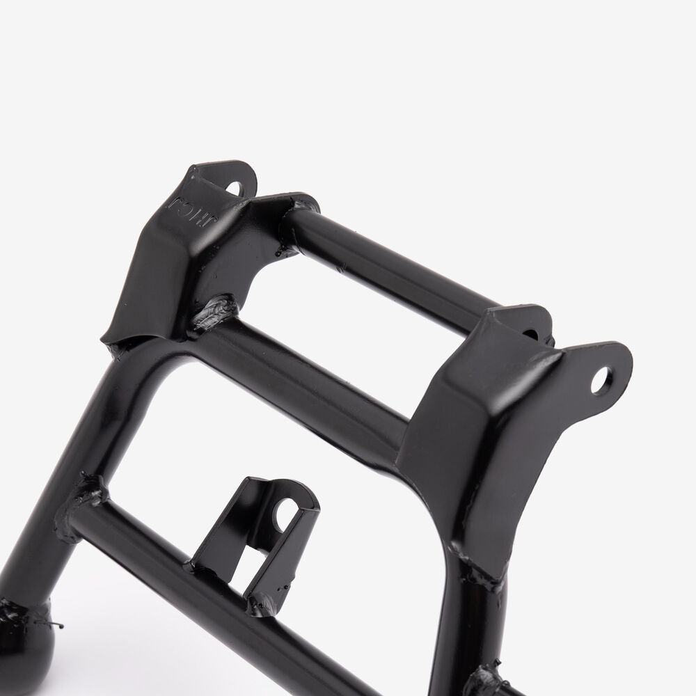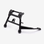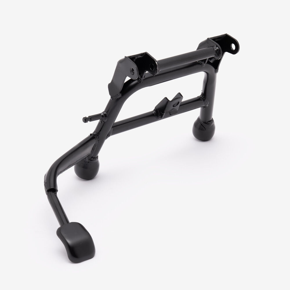 The center stand is a support mechanism on a motorcycle that allows the bike to be parked upright and stable when not in use. Mounted centrally beneath the motorcycle, it consists of two legs that extend downward and a pivot point that enables the stand to be deployed or retracted. When the stand is engaged, it provides a secure base, making it easier to perform maintenance tasks, such as tire changes or chain adjustments, and ensures the motorcycle remains upright and balanced while parked. The center stand is typically operated by the rider’s foot and is often equipped with a spring to assist in its retraction.