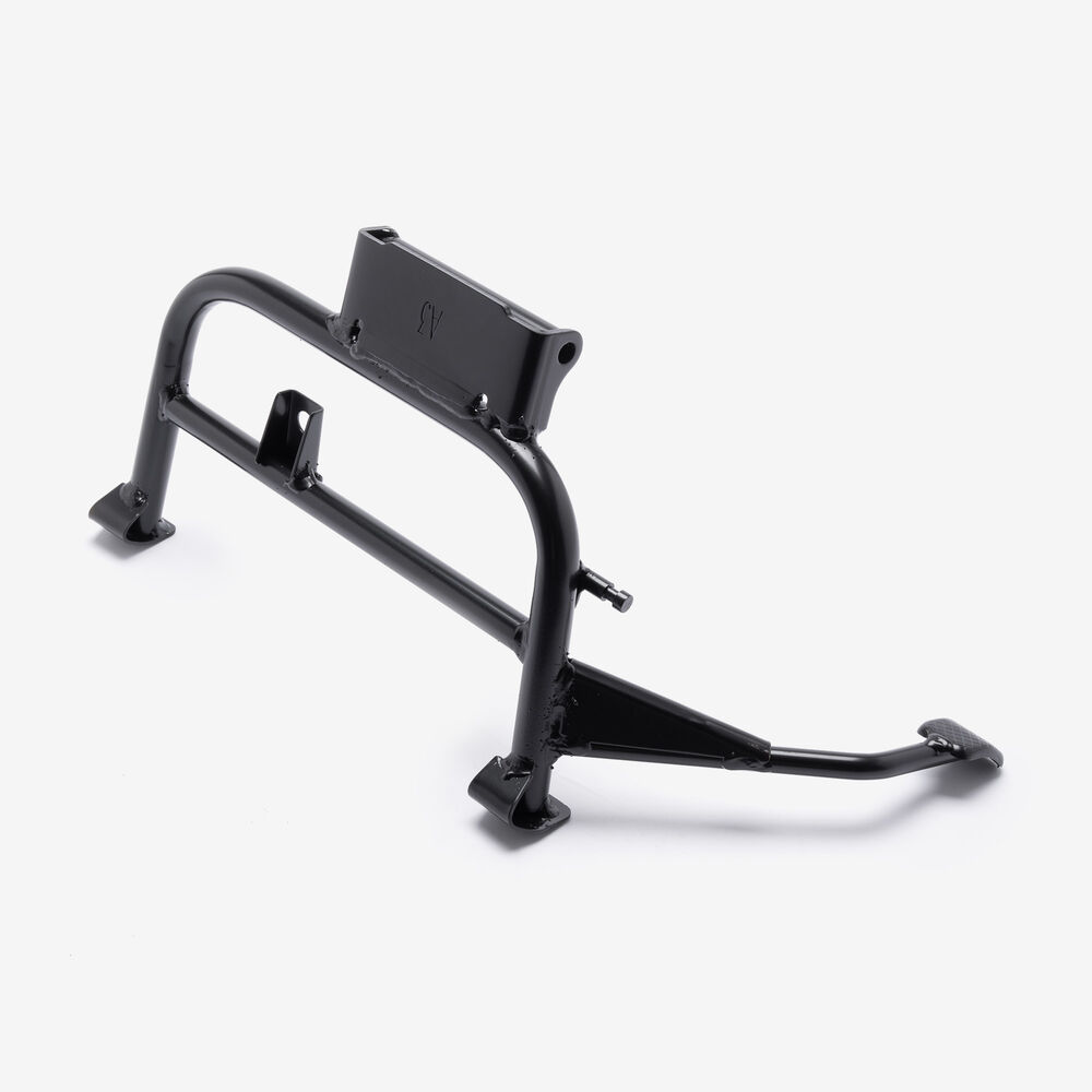 The center stand is a support mechanism on a motorcycle that allows the bike to be parked upright and stable when not in use. Mounted centrally beneath the motorcycle, it consists of two legs that extend downward and a pivot point that enables the stand to be deployed or retracted. When the stand is engaged, it provides a secure base, making it easier to perform maintenance tasks, such as tire changes or chain adjustments, and ensures the motorcycle remains upright and balanced while parked. The center stand is typically operated by the rider’s foot and is often equipped with a spring to assist in its retraction.