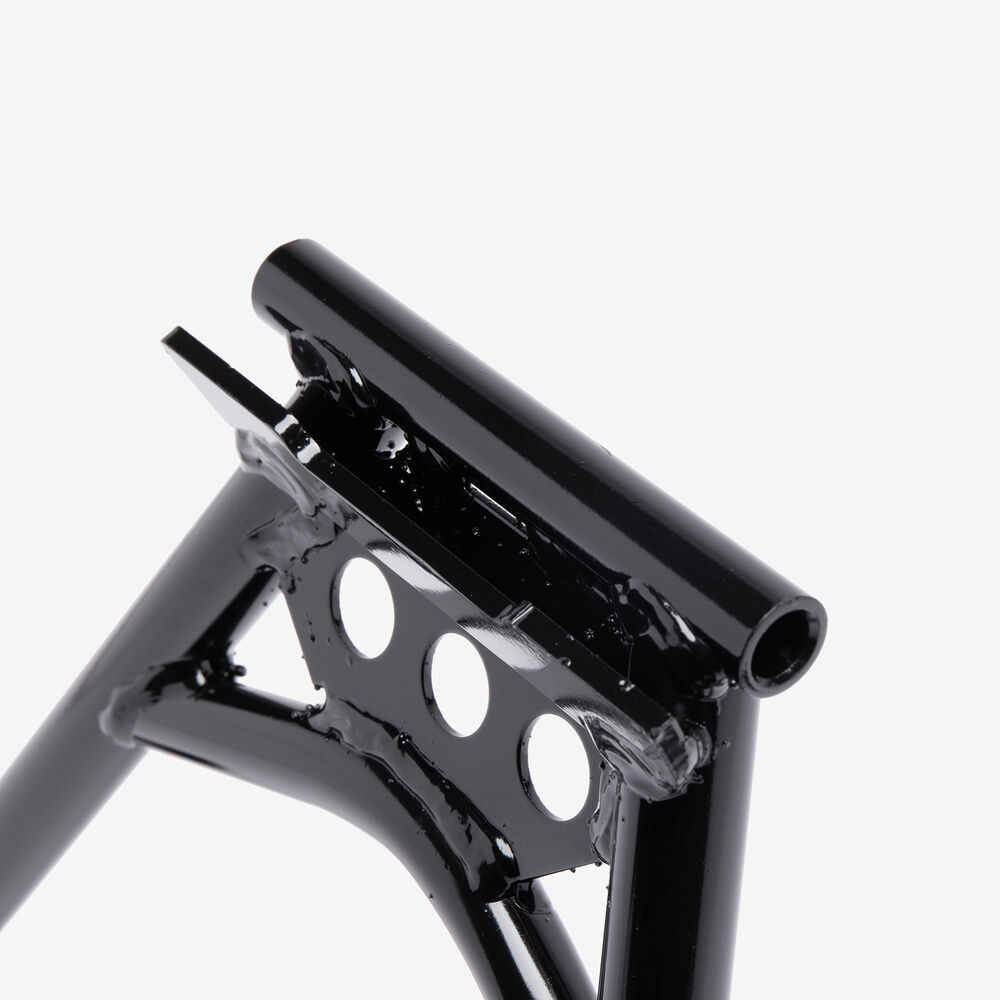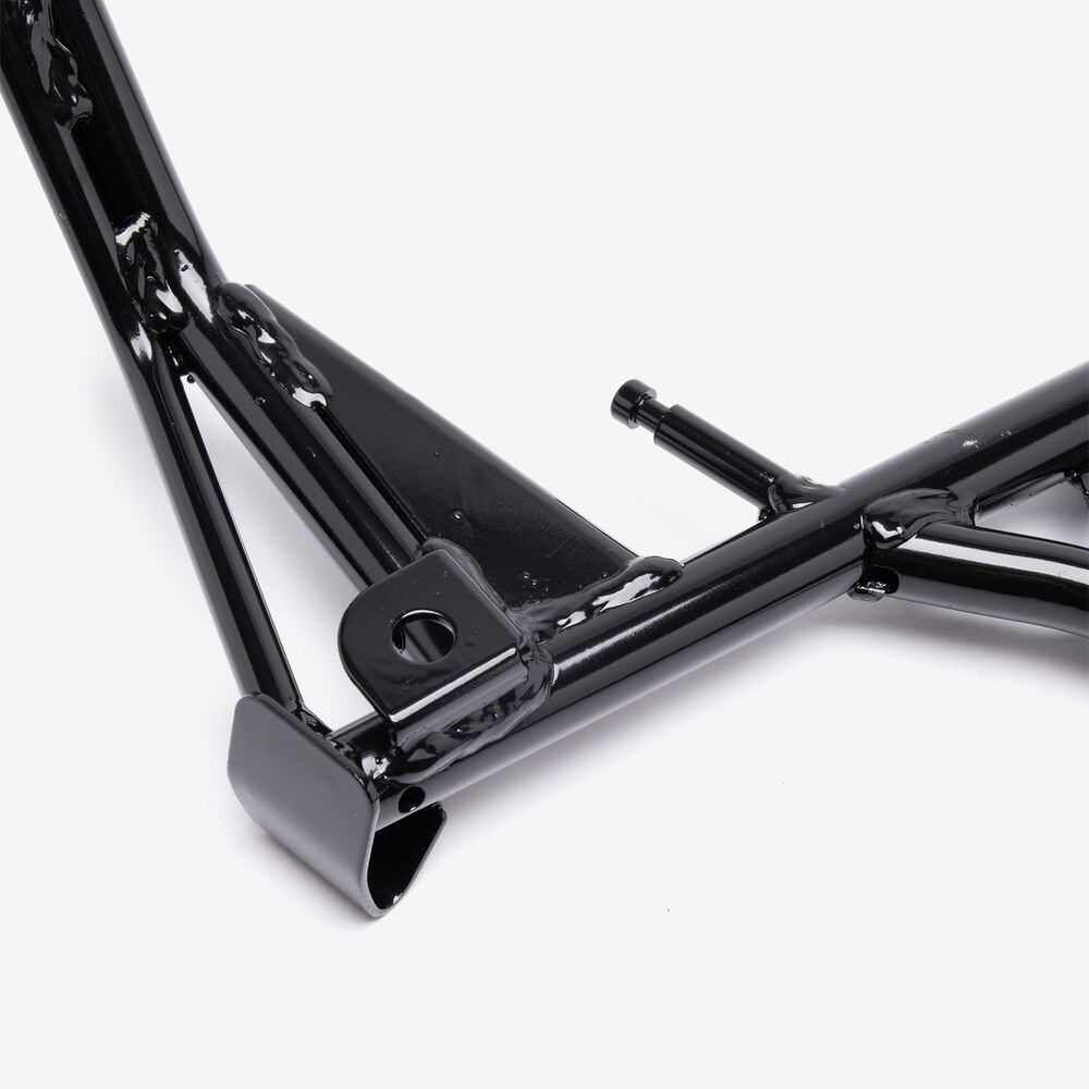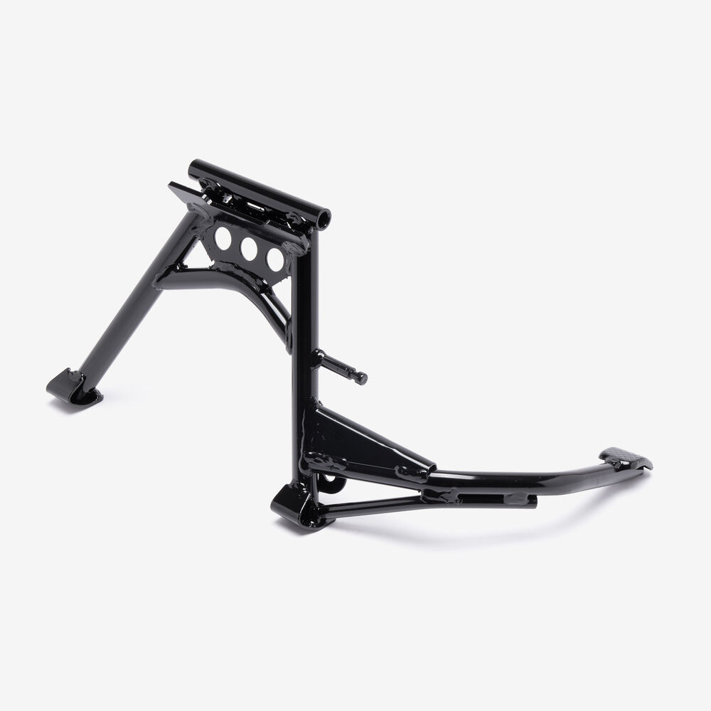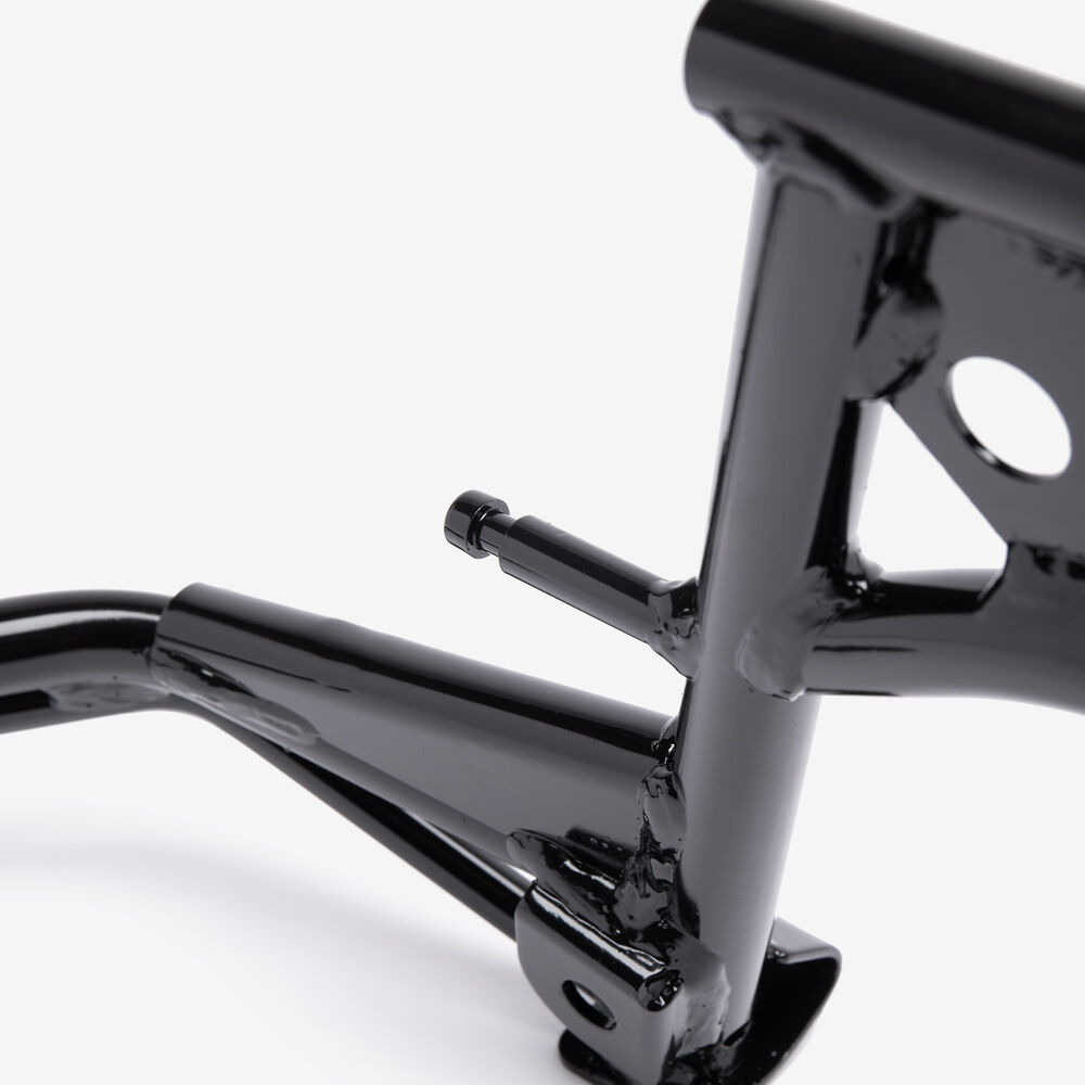 The center stand is a support mechanism on a motorcycle that allows the bike to be parked upright and stable when not in use. Mounted centrally beneath the motorcycle, it consists of two legs that extend downward and a pivot point that enables the stand to be deployed or retracted. When the stand is engaged, it provides a secure base, making it easier to perform maintenance tasks, such as tire changes or chain adjustments, and ensures the motorcycle remains upright and balanced while parked. The center stand is typically operated by the rider’s foot and is often equipped with a spring to assist in its retraction.