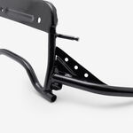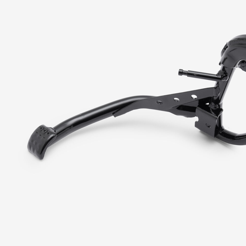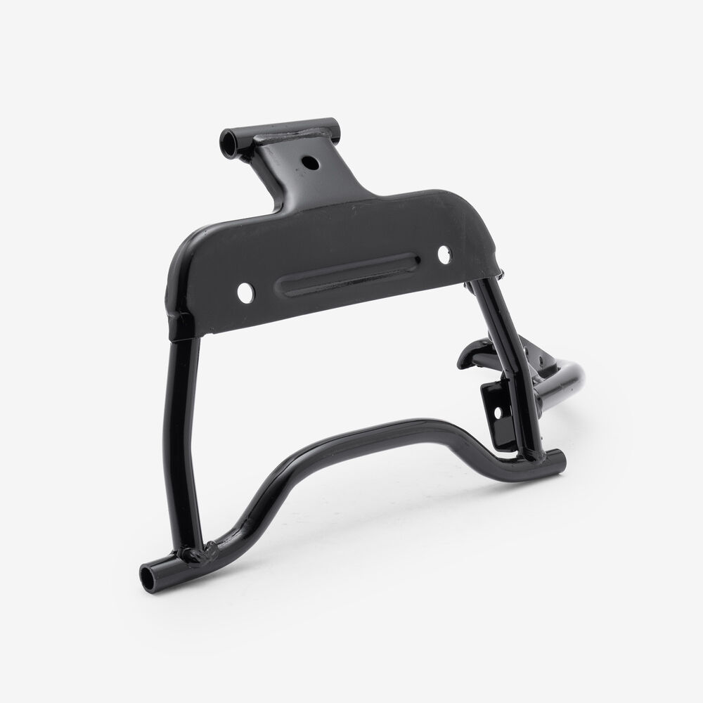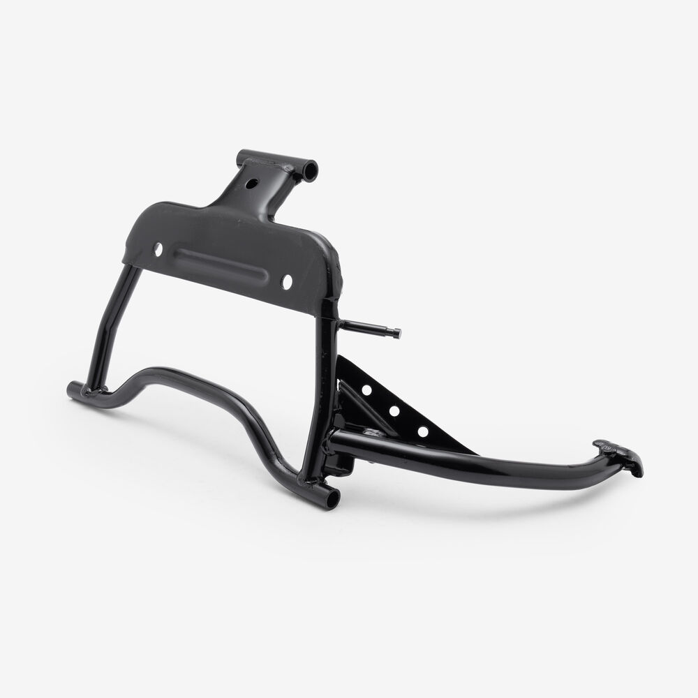 The center stand is a support mechanism on a motorcycle that allows the bike to be parked upright and stable when not in use. Mounted centrally beneath the motorcycle, it consists of two legs that extend downward and a pivot point that enables the stand to be deployed or retracted. When the stand is engaged, it provides a secure base, making it easier to perform maintenance tasks, such as tire changes or chain adjustments, and ensures the motorcycle remains upright and balanced while parked. The center stand is typically operated by the rider’s foot and is often equipped with a spring to assist in its retraction.