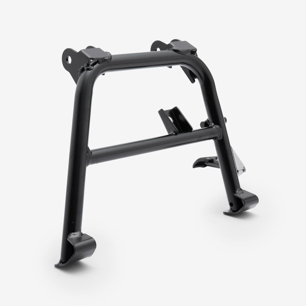 The center stand is a support mechanism on a motorcycle that allows the bike to be parked upright and stable when not in use. Mounted centrally beneath the motorcycle, it consists of two legs that extend downward and a pivot point that enables the stand to be deployed or retracted. When the stand is engaged, it provides a secure base, making it easier to perform maintenance tasks, such as tire changes or chain adjustments, and ensures the motorcycle remains upright and balanced while parked. The center stand is typically operated by the rider’s foot and is often equipped with a spring to assist in its retraction.