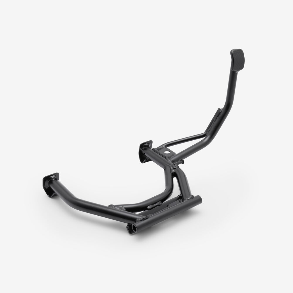 The center stand is a support mechanism on a motorcycle that allows the bike to be parked upright and stable when not in use. Mounted centrally beneath the motorcycle, it consists of two legs that extend downward and a pivot point that enables the stand to be deployed or retracted. When the stand is engaged, it provides a secure base, making it easier to perform maintenance tasks, such as tire changes or chain adjustments, and ensures the motorcycle remains upright and balanced while parked. The center stand is typically operated by the rider’s foot and is often equipped with a spring to assist in its retraction.
