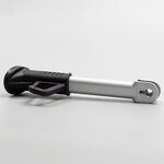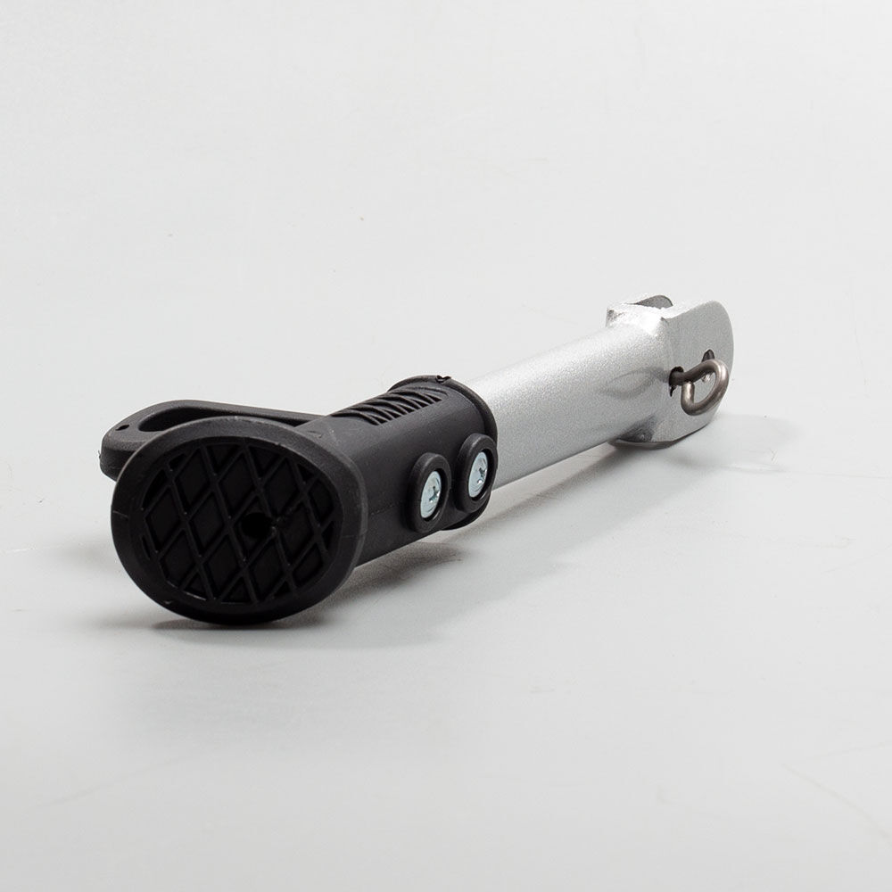 The side stand, also known as the kickstand, is a support mechanism on a motorcycle that allows it to remain upright when parked. It is typically mounted on the left side of the motorcycle and extends downward to rest on the ground. When deployed, the side stand stabilizes the motorcycle by providing a solid base, preventing it from tipping over. The stand is often equipped with a spring mechanism that automatically retracts it when the motorcycle is in use, and may include a safety switch to prevent engine start if the stand is down.