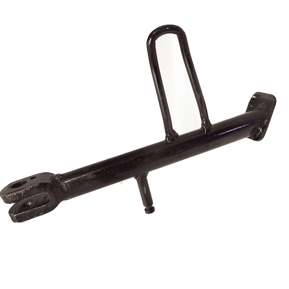 The side stand, also known as the kickstand, is a support mechanism on a motorcycle that allows it to remain upright when parked. It is typically mounted on the left side of the motorcycle and extends downward to rest on the ground. When deployed, the side stand stabilizes the motorcycle by providing a solid base, preventing it from tipping over. The stand is often equipped with a spring mechanism that automatically retracts it when the motorcycle is in use, and may include a safety switch to prevent engine start if the stand is down.