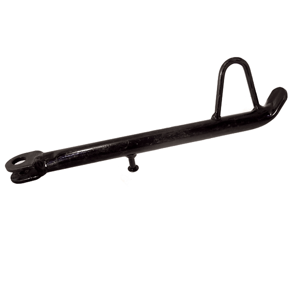 The side stand, also known as the kickstand, is a support mechanism on a motorcycle that allows it to remain upright when parked. It is typically mounted on the left side of the motorcycle and extends downward to rest on the ground. When deployed, the side stand stabilizes the motorcycle by providing a solid base, preventing it from tipping over. The stand is often equipped with a spring mechanism that automatically retracts it when the motorcycle is in use, and may include a safety switch to prevent engine start if the stand is down.