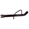 The side stand, also known as the kickstand, is a support mechanism on a motorcycle that allows it to remain upright when parked. It is typically mounted on the left side of the motorcycle and extends downward to rest on the ground. When deployed, the side stand stabilizes the motorcycle by providing a solid base, preventing it from tipping over. The stand is often equipped with a spring mechanism that automatically retracts it when the motorcycle is in use, and may include a safety switch to prevent engine start if the stand is down.