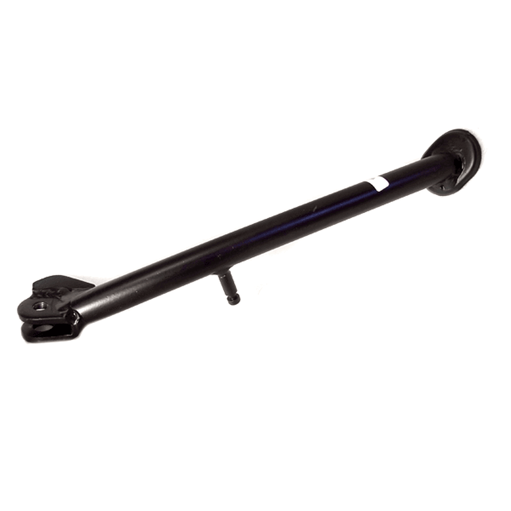 The side stand, also known as the kickstand, is a support mechanism on a motorcycle that allows it to remain upright when parked. It is typically mounted on the left side of the motorcycle and extends downward to rest on the ground. When deployed, the side stand stabilizes the motorcycle by providing a solid base, preventing it from tipping over. The stand is often equipped with a spring mechanism that automatically retracts it when the motorcycle is in use, and may include a safety switch to prevent engine start if the stand is down.
