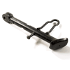 The side stand, also known as the kickstand, is a support mechanism on a motorcycle that allows it to remain upright when parked. It is typically mounted on the left side of the motorcycle and extends downward to rest on the ground. When deployed, the side stand stabilizes the motorcycle by providing a solid base, preventing it from tipping over. The stand is often equipped with a spring mechanism that automatically retracts it when the motorcycle is in use, and may include a safety switch to prevent engine start if the stand is down.