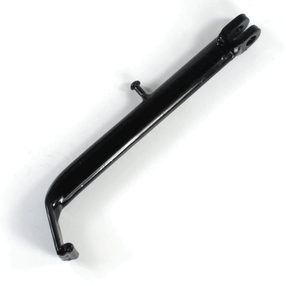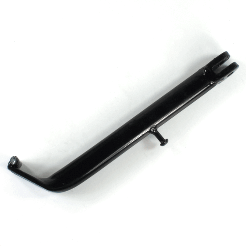 The side stand, also known as the kickstand, is a support mechanism on a motorcycle that allows it to remain upright when parked. It is typically mounted on the left side of the motorcycle and extends downward to rest on the ground. When deployed, the side stand stabilizes the motorcycle by providing a solid base, preventing it from tipping over. The stand is often equipped with a spring mechanism that automatically retracts it when the motorcycle is in use, and may include a safety switch to prevent engine start if the stand is down.