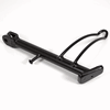 The side stand, also known as the kickstand, is a support mechanism on a motorcycle that allows it to remain upright when parked. It is typically mounted on the left side of the motorcycle and extends downward to rest on the ground. When deployed, the side stand stabilizes the motorcycle by providing a solid base, preventing it from tipping over. The stand is often equipped with a spring mechanism that automatically retracts it when the motorcycle is in use, and may include a safety switch to prevent engine start if the stand is down.